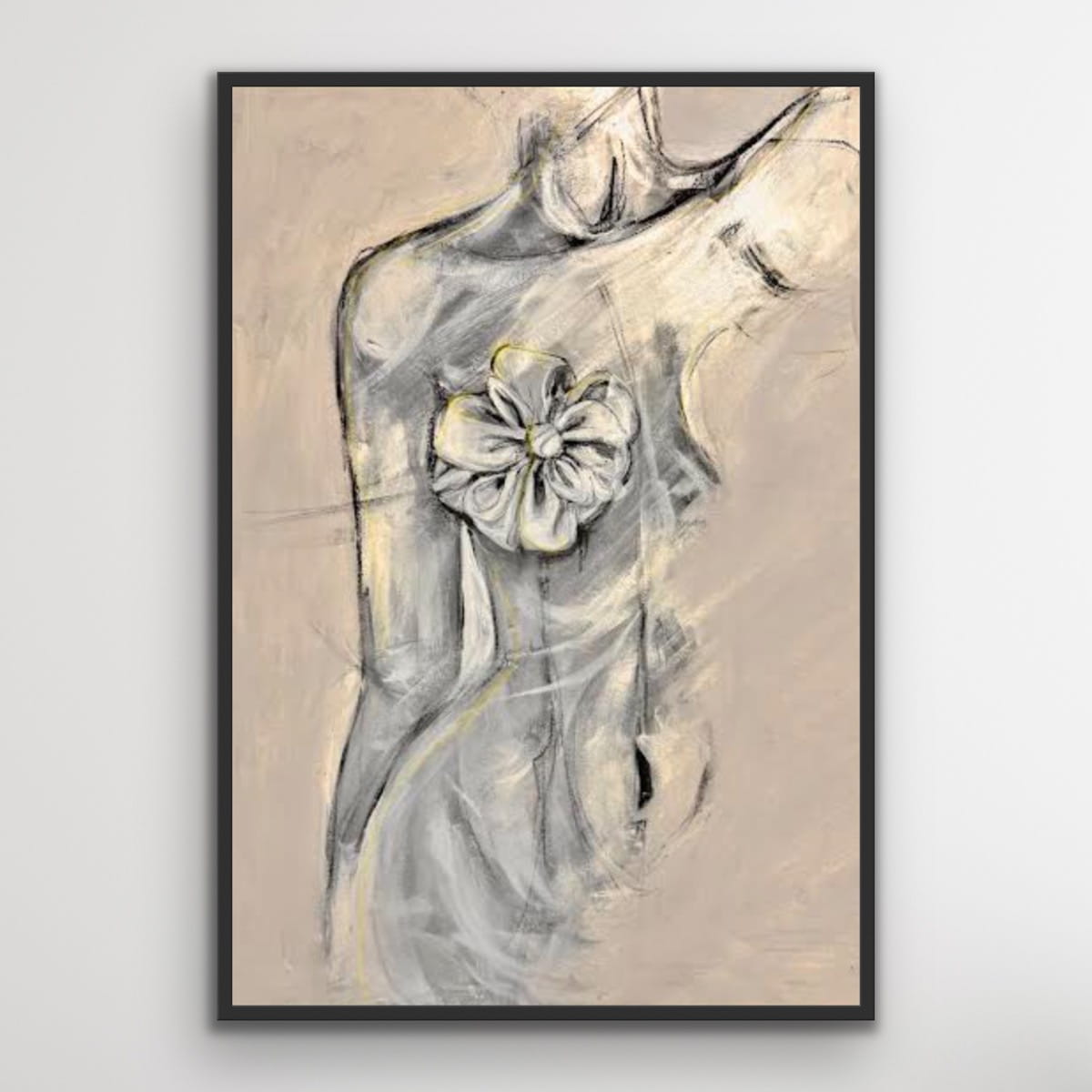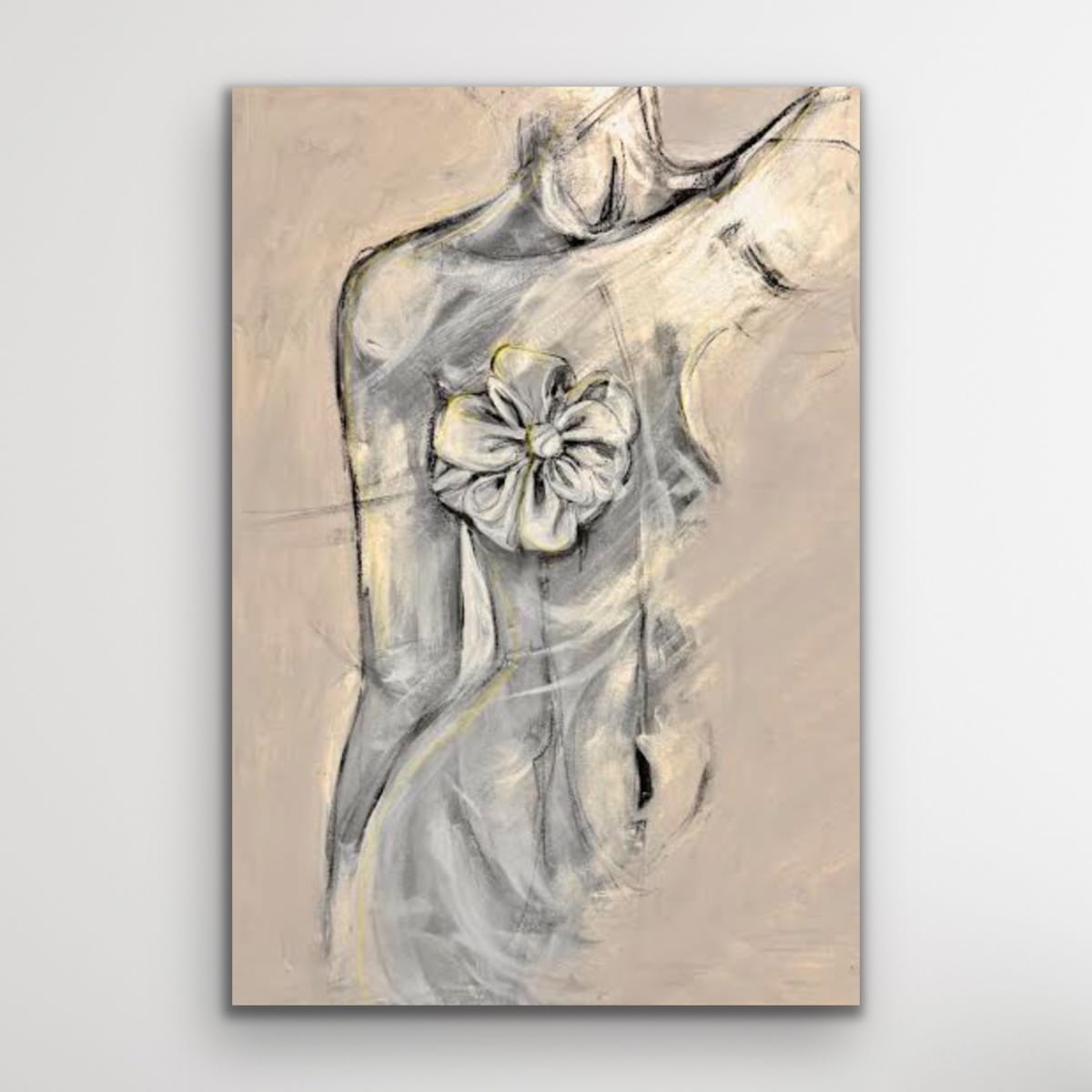 BOW beige vertikale Goldreproduktion - Bild auf einem Rahmen, gedruckt mit einer klaren Struktur