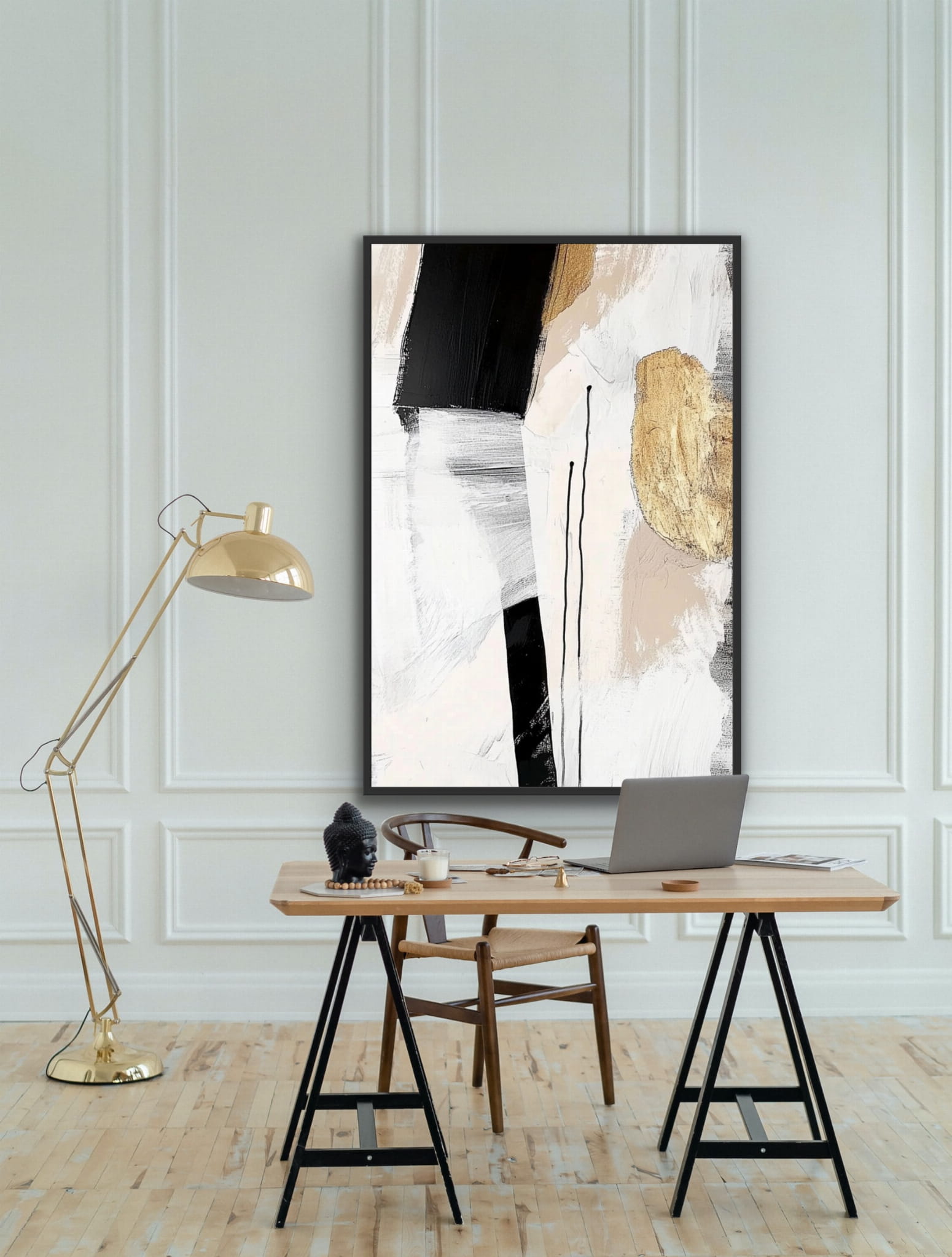 DOSS vertikales/horizontales Goldreproduktionsbild auf Rahmen, gedruckt mit einer klaren Struktur
