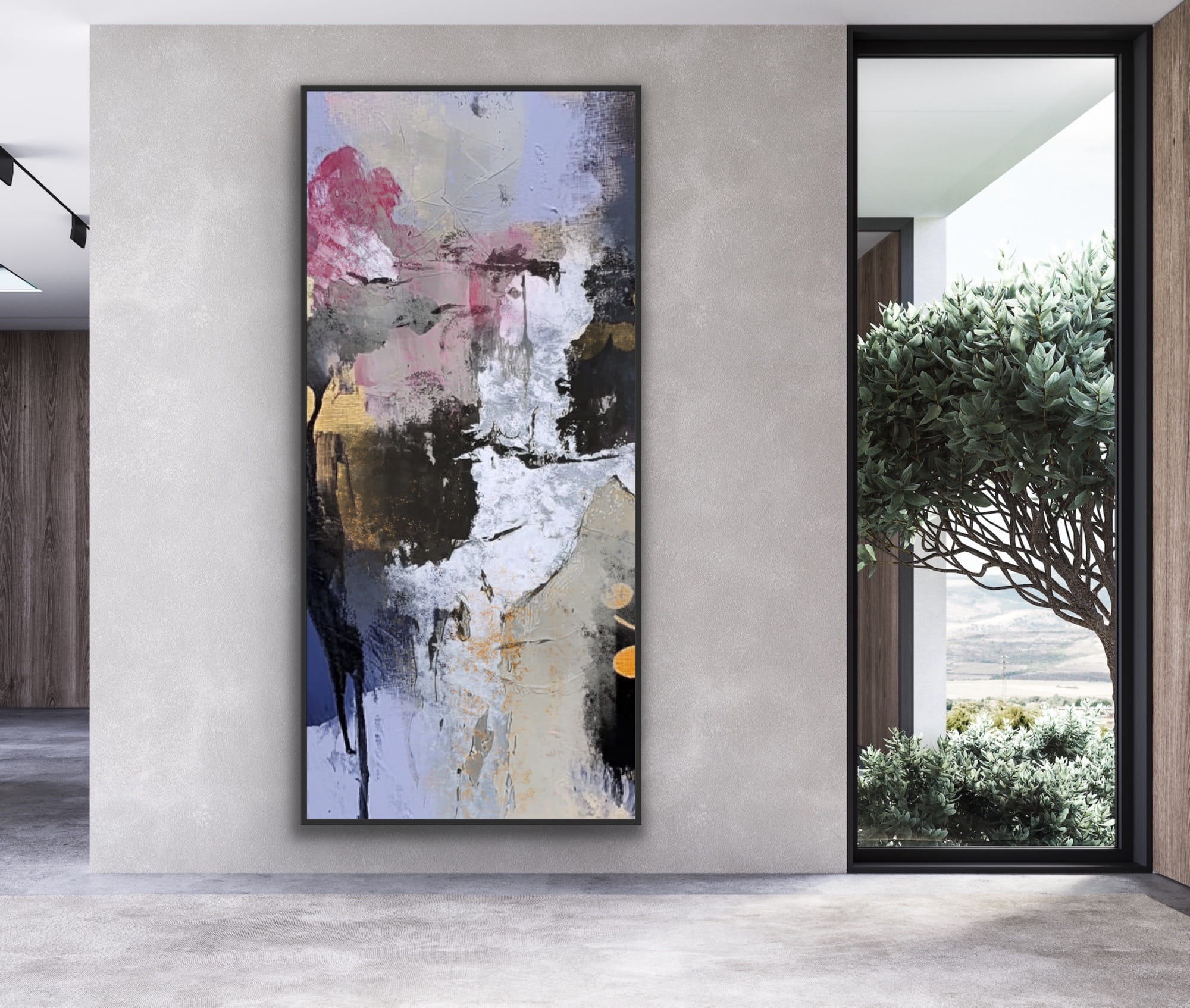 EASTERN FJORDS vertikales silbernes Reproduktionsgemälde auf Rahmen, gedruckt mit einer klaren Struktur