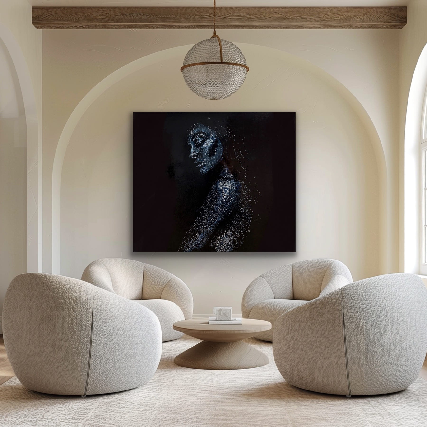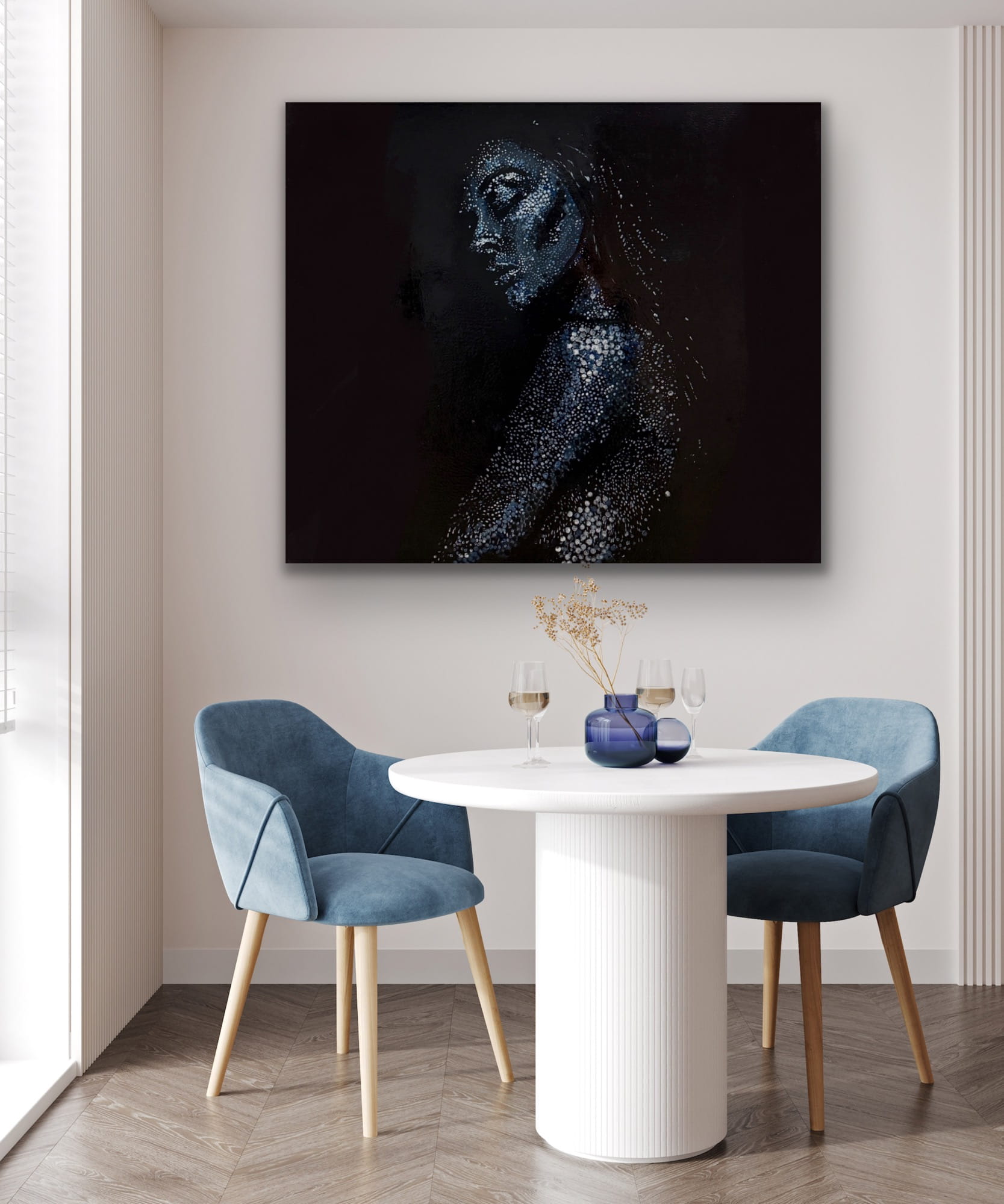 Reprodukcja to drukowana wersja obrazu. Druk wykonany jest na tkaninie imitującej płótno. Gramatura tkaniny to 260g. Tkanina jest naciągnięta na drewniany stelaż. Bok obrazu jest zadrukowany i ma 2 cm.