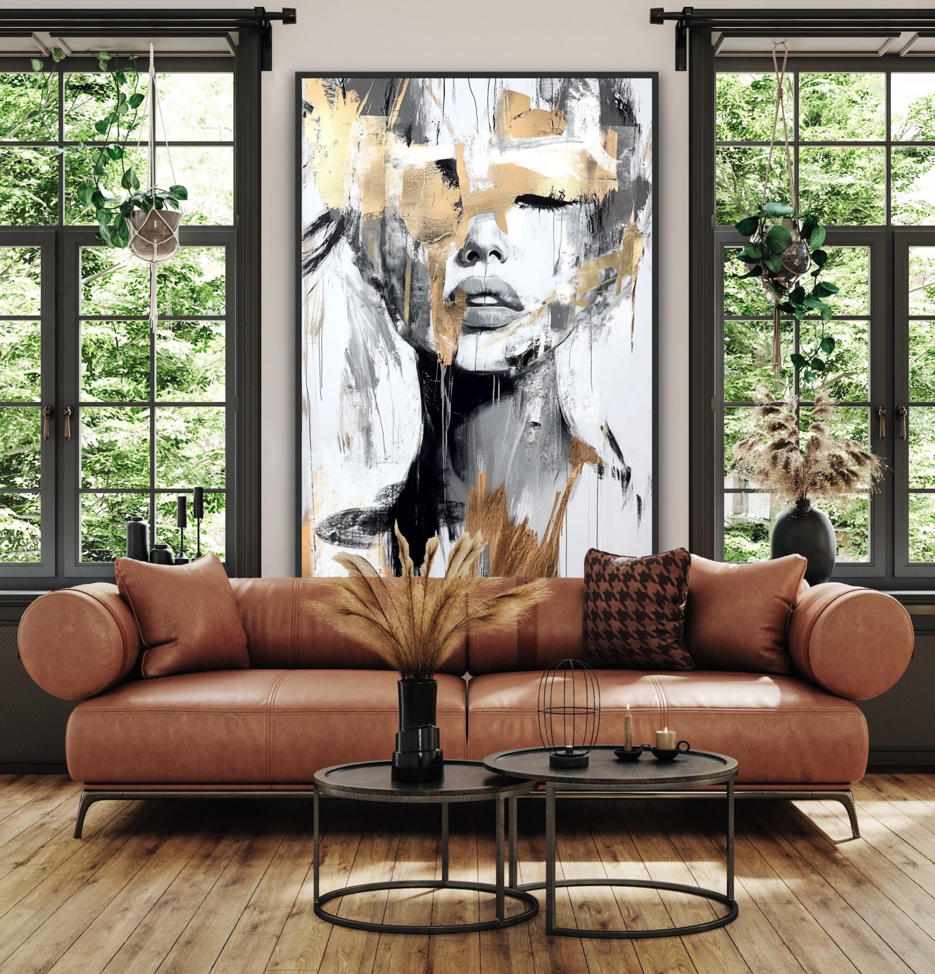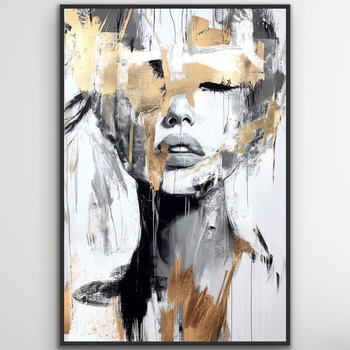 ERSETZTES vertikales Goldreproduktionsgemälde auf Rahmen, gedruckt mit einer klaren Struktur