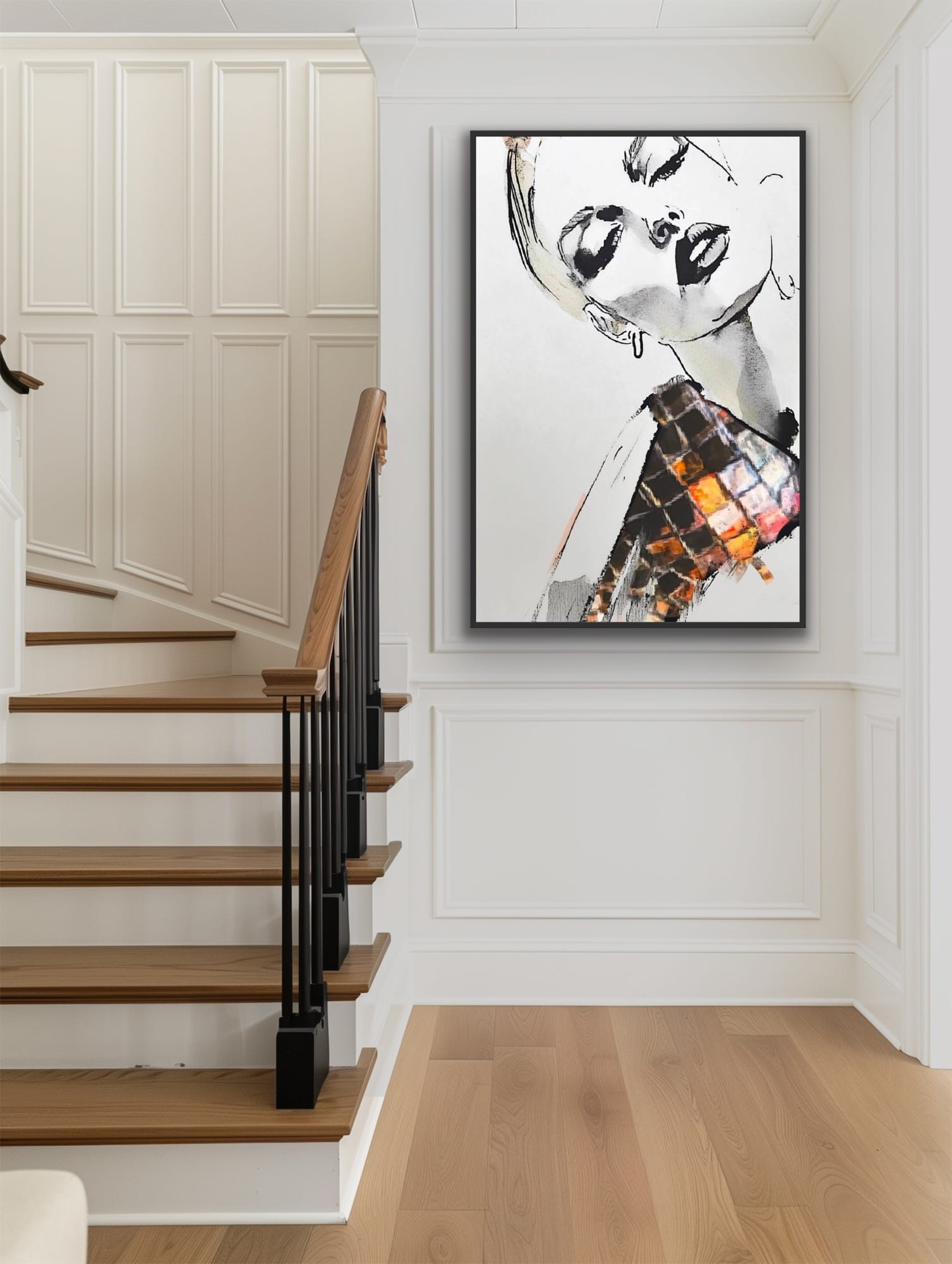 FÜLLIGE vertikale Reproduktion eines Bildes auf einem Rahmen, gedruckt mit einer klaren Struktur