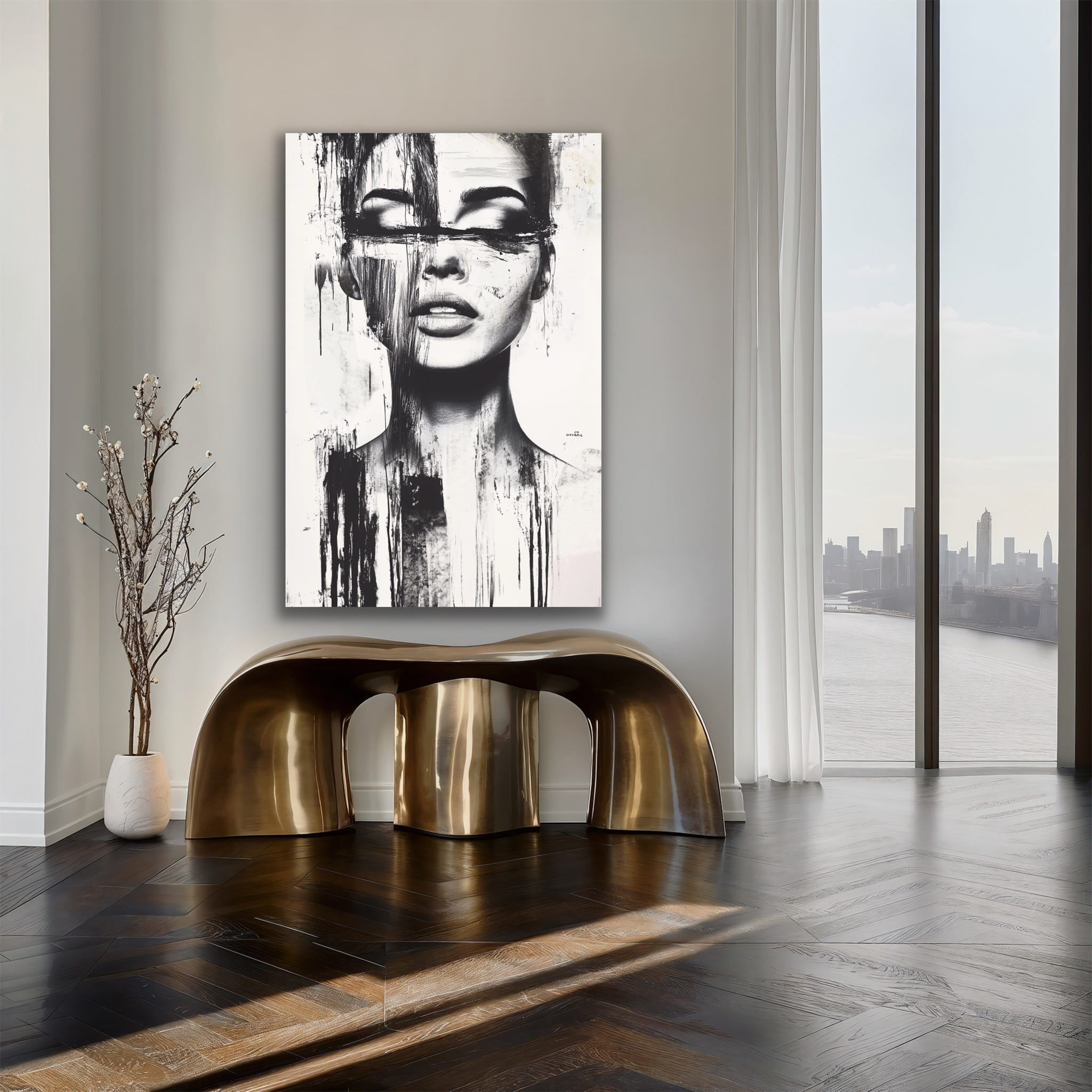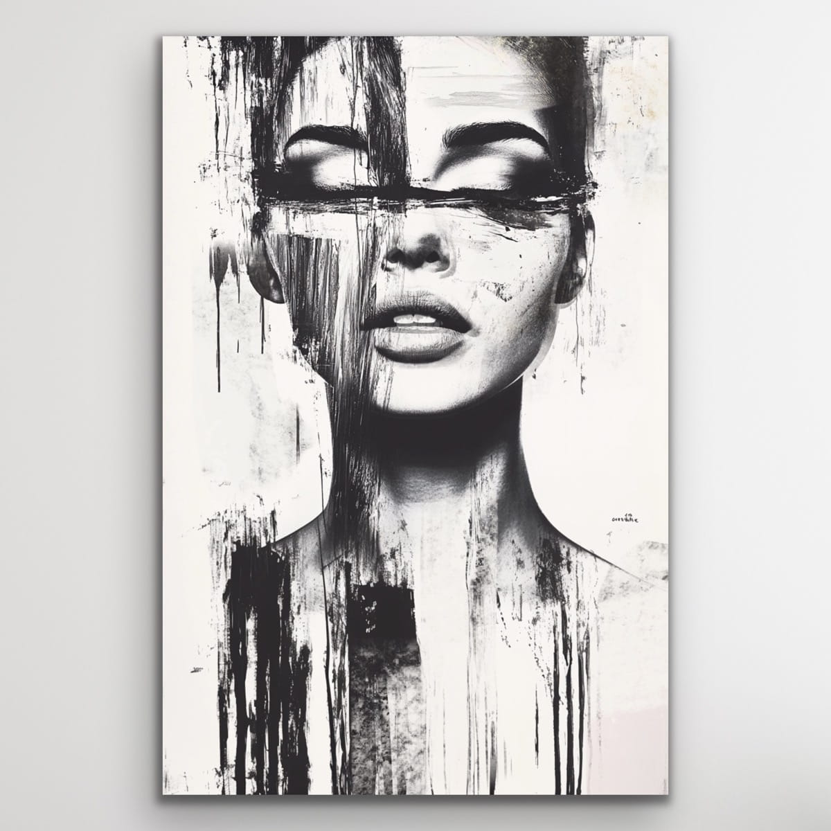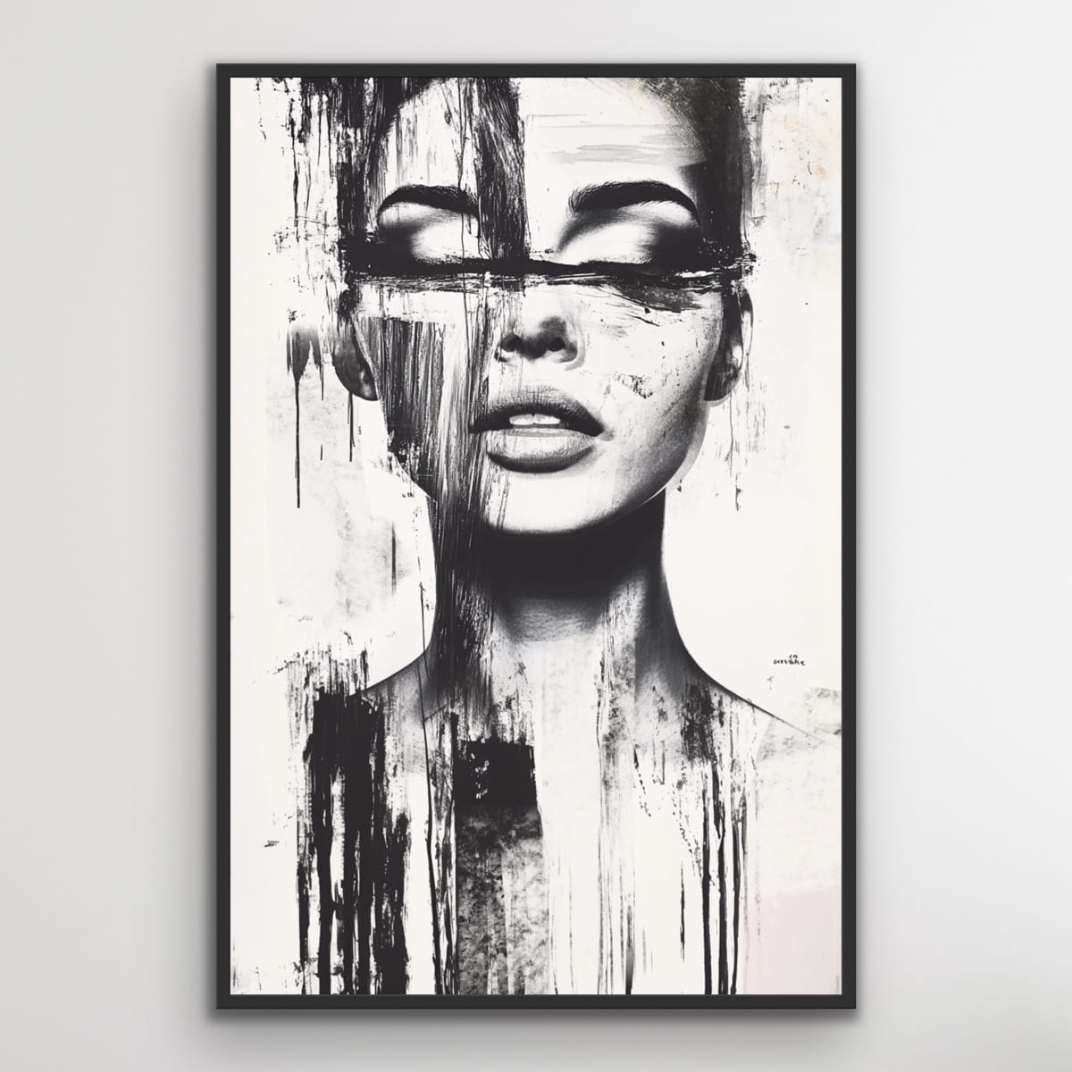GEGLÄTTET Hochformatige Reproduktion eines Bildes auf einem Rahmen, bedruckt mit einer klaren Struktur