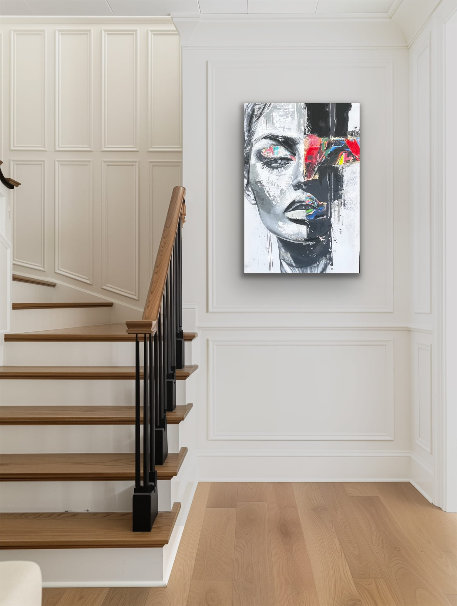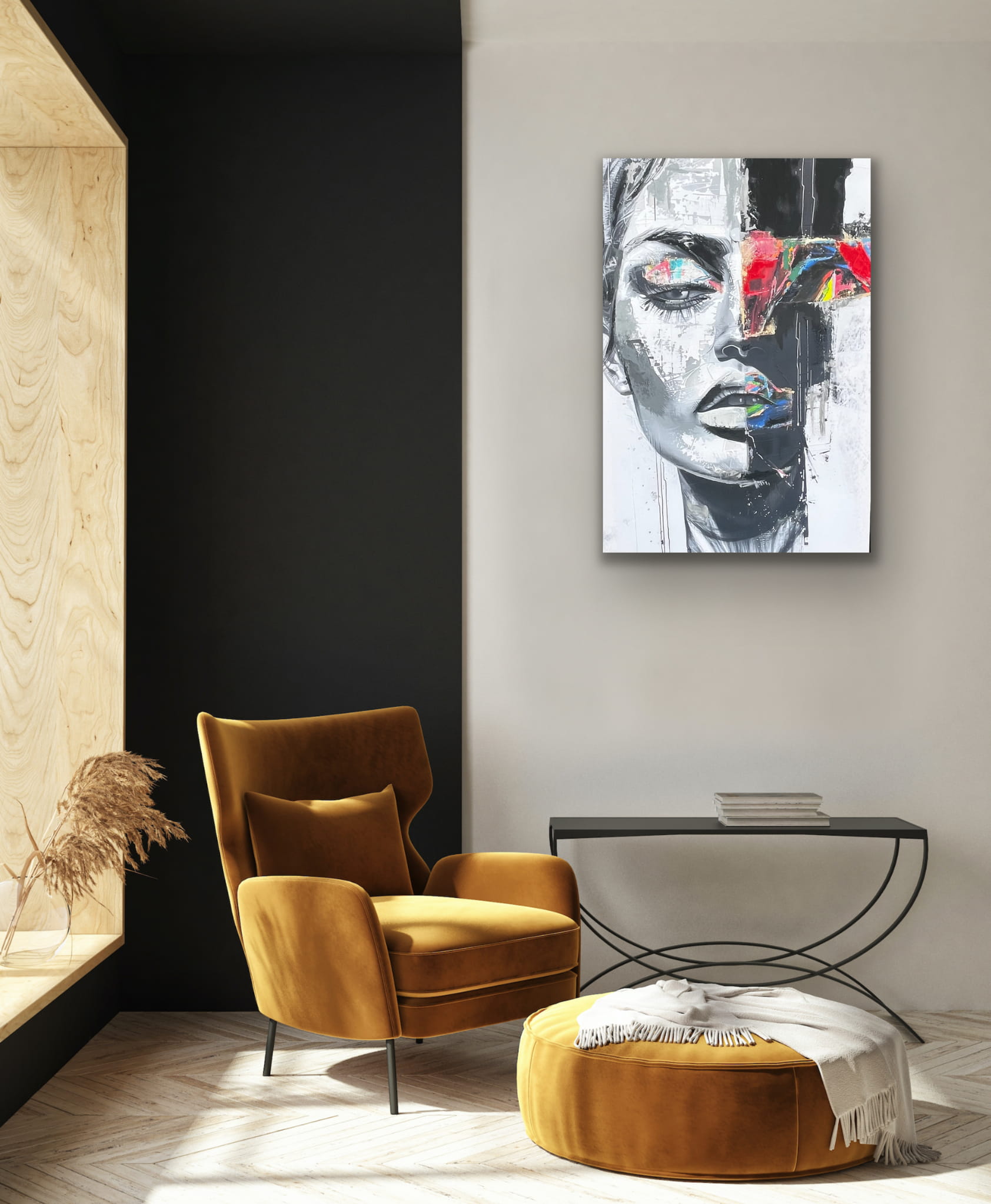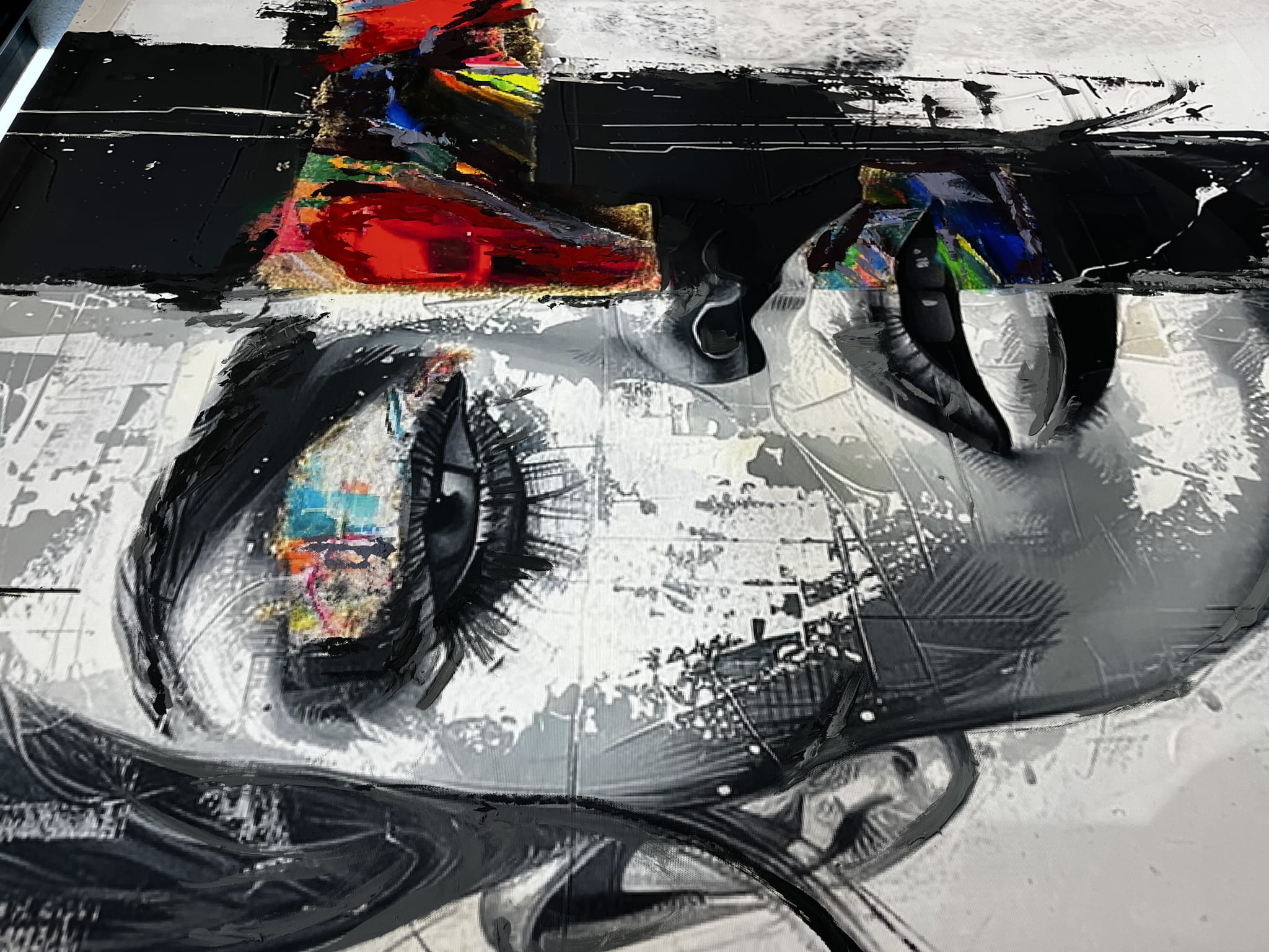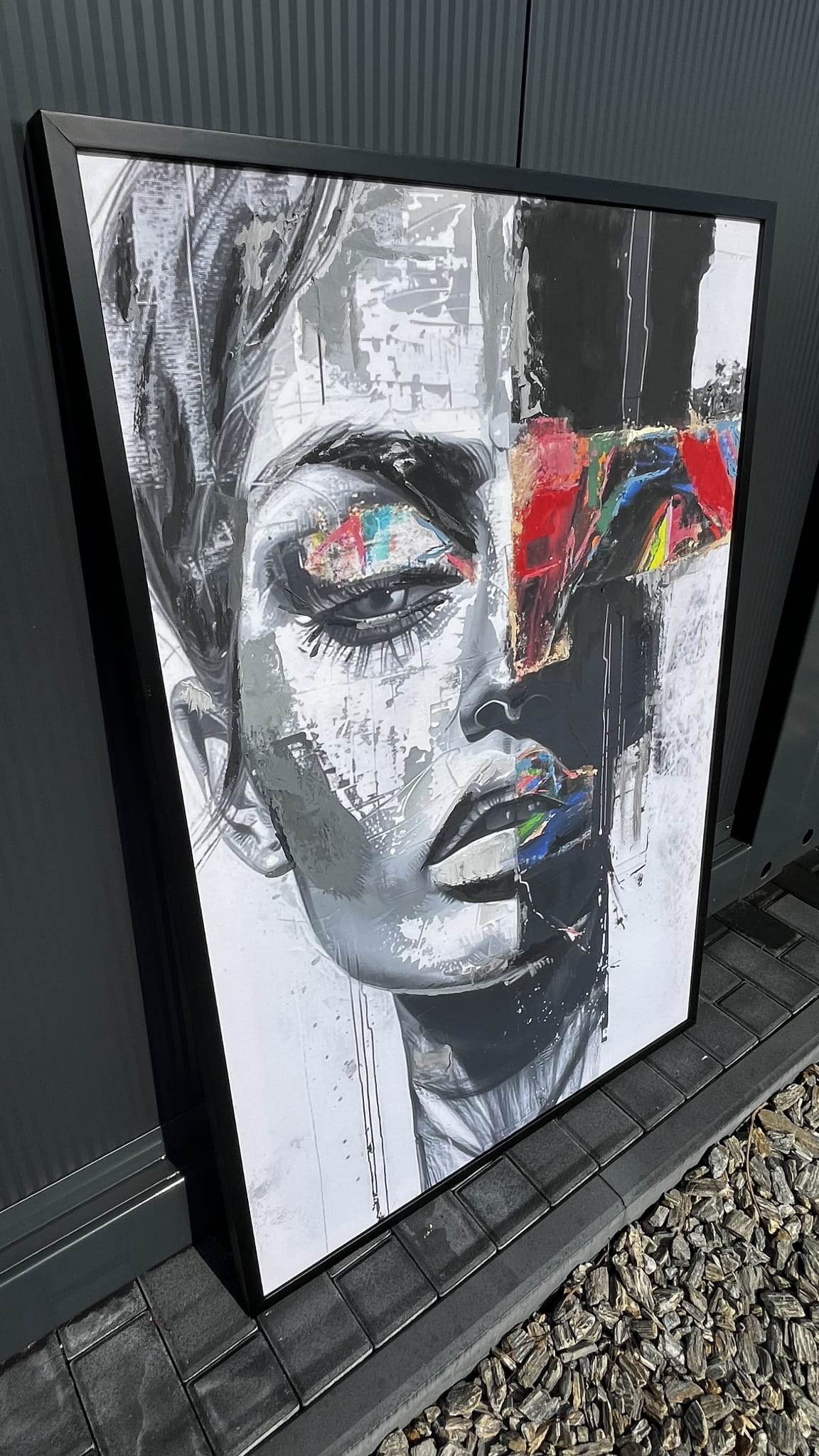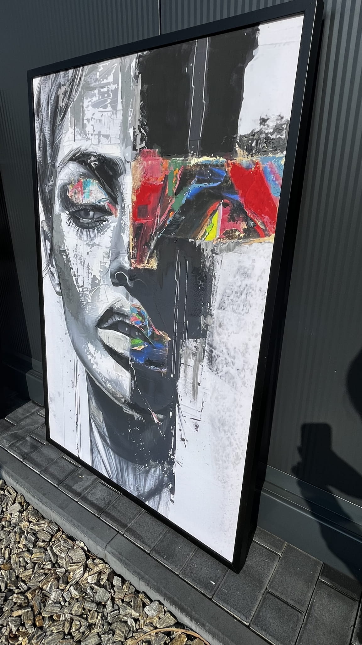 Reprodukcja to drukowana wersja obrazu. Druk wykonany jest na tkaninie imitującej płótno. Gramatura tkaniny to 260g. Tkanina jest naciągnięta na drewniany stelaż. Bok obrazu jest zadrukowany i ma 2 cm.
