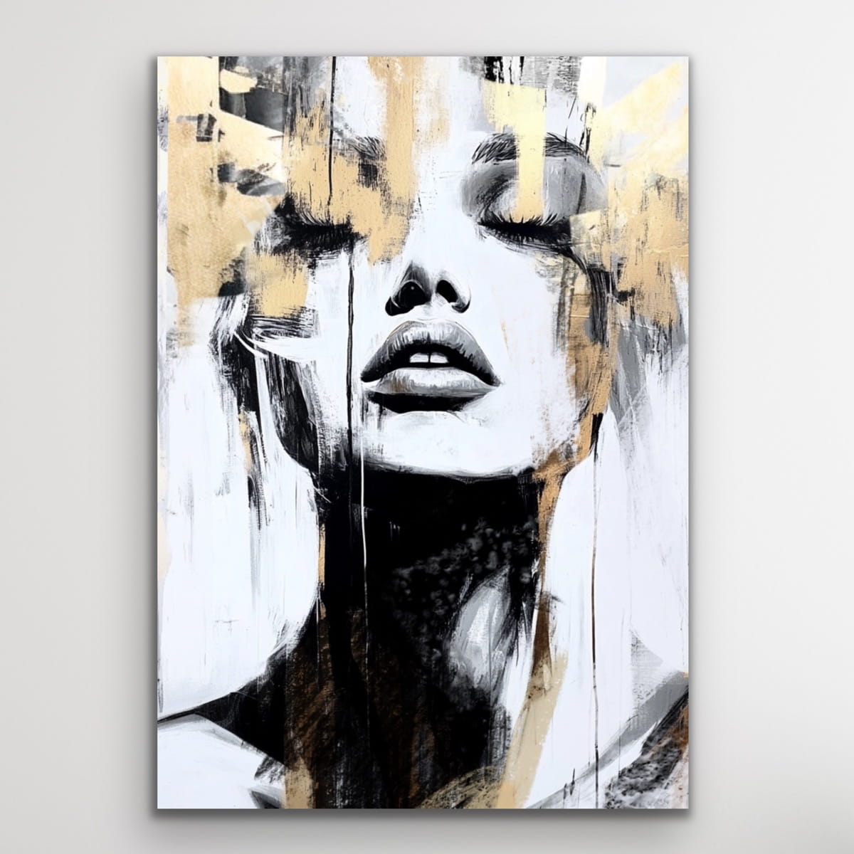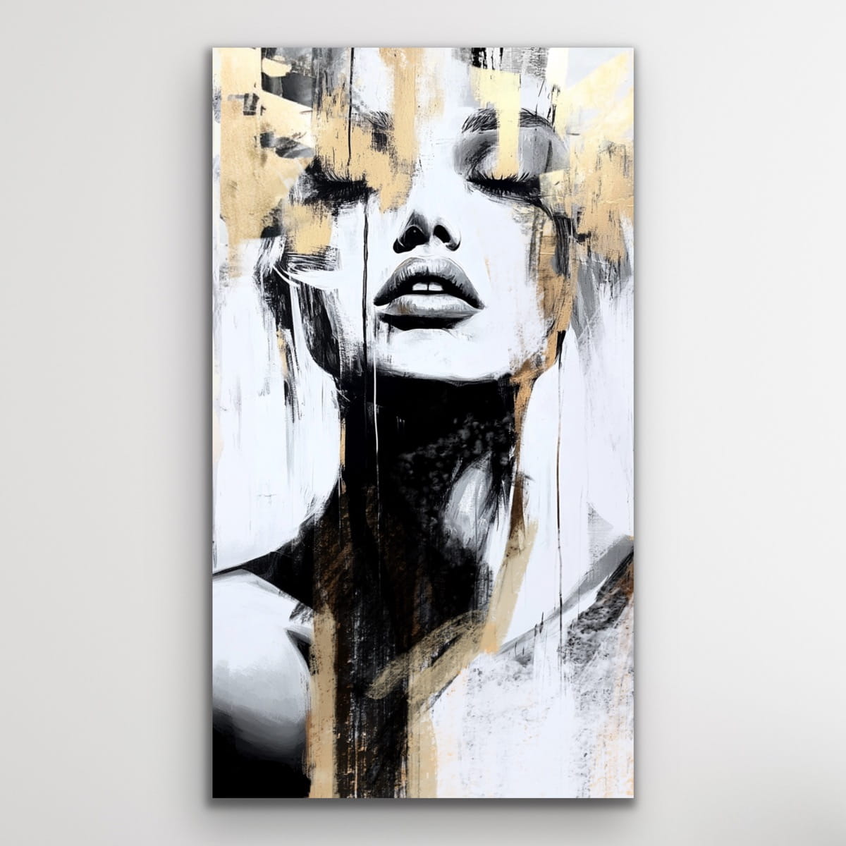 LUBIANA vertikales Goldreproduktionsgemälde auf einem Rahmen, gedruckt mit einer klaren Struktur