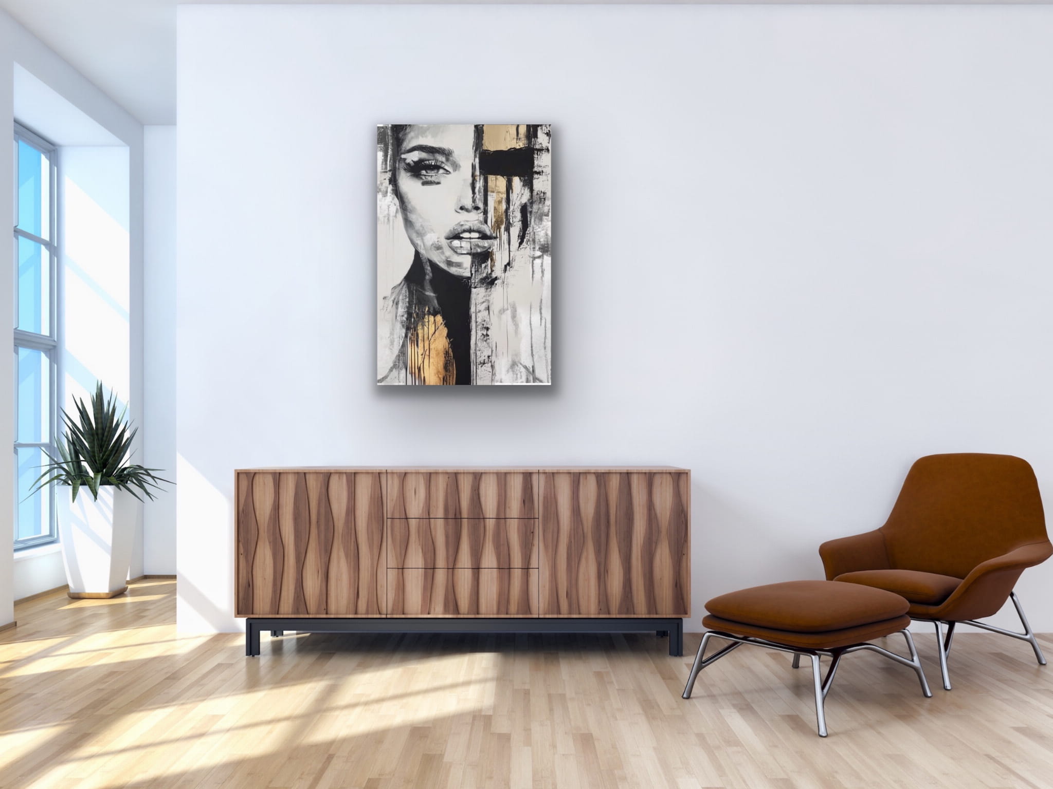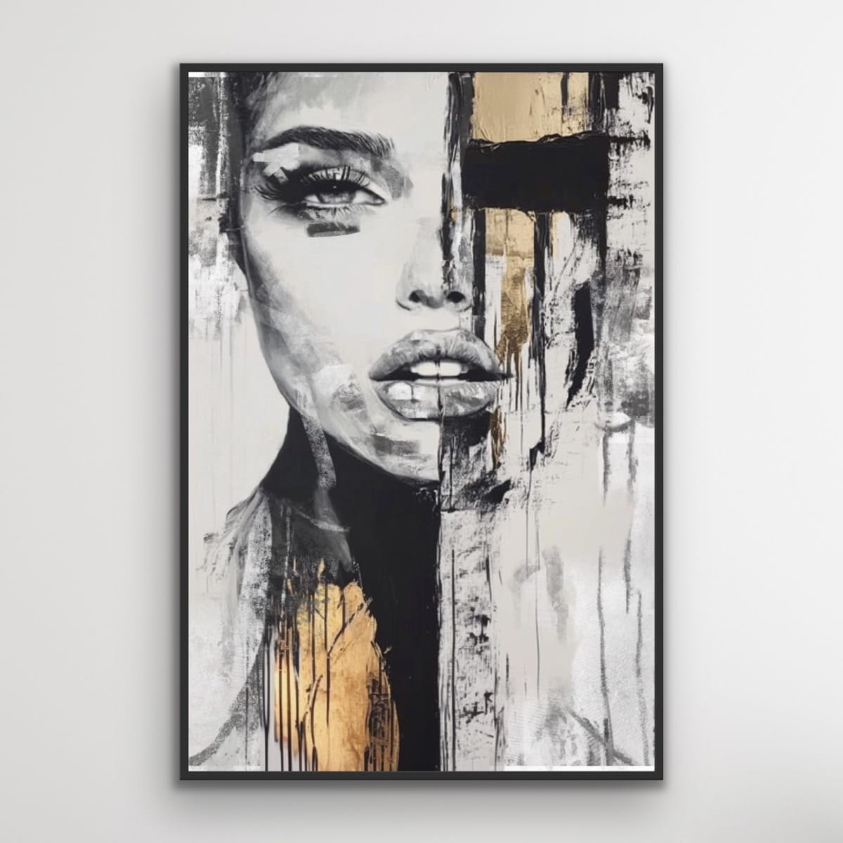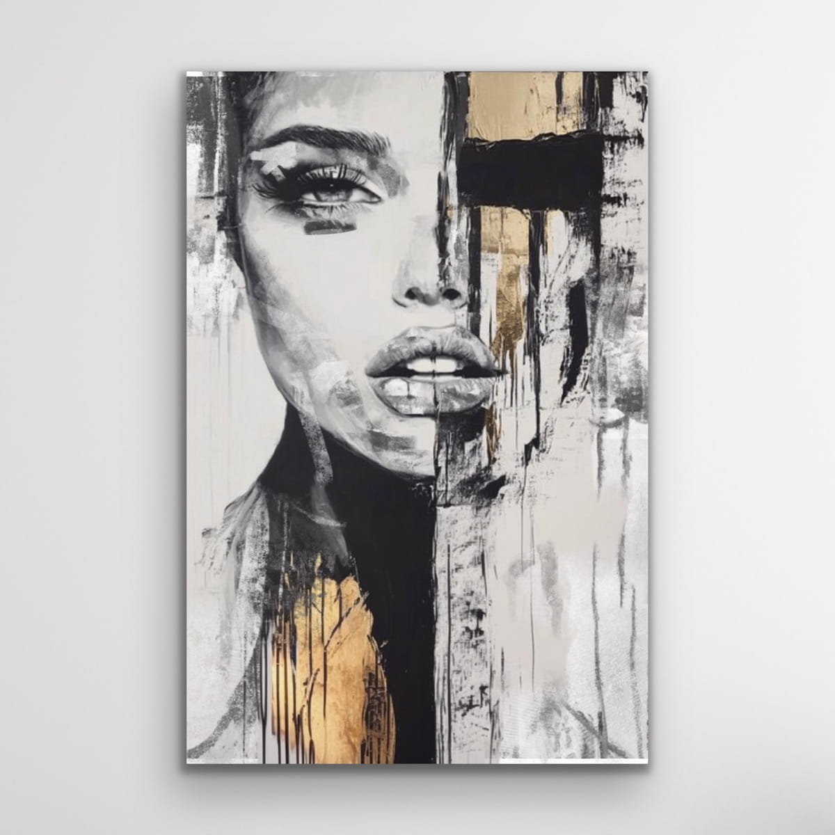 NIEMOCNA Gold vertikale Reproduktion eines Gemäldes auf einem Rahmen, gedruckt mit einer klaren Struktur