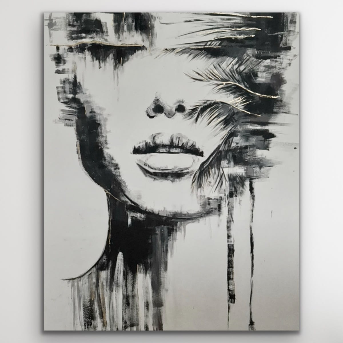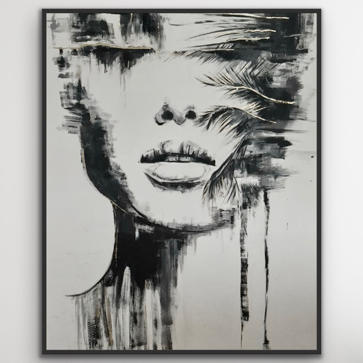 PALMIARA Gold, vertikale Reproduktion eines Gemäldes auf einem Rahmen, bedruckt mit einer klaren Struktur