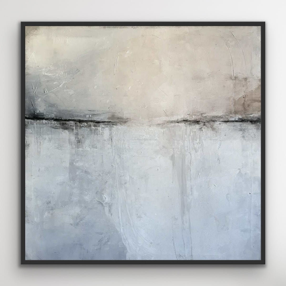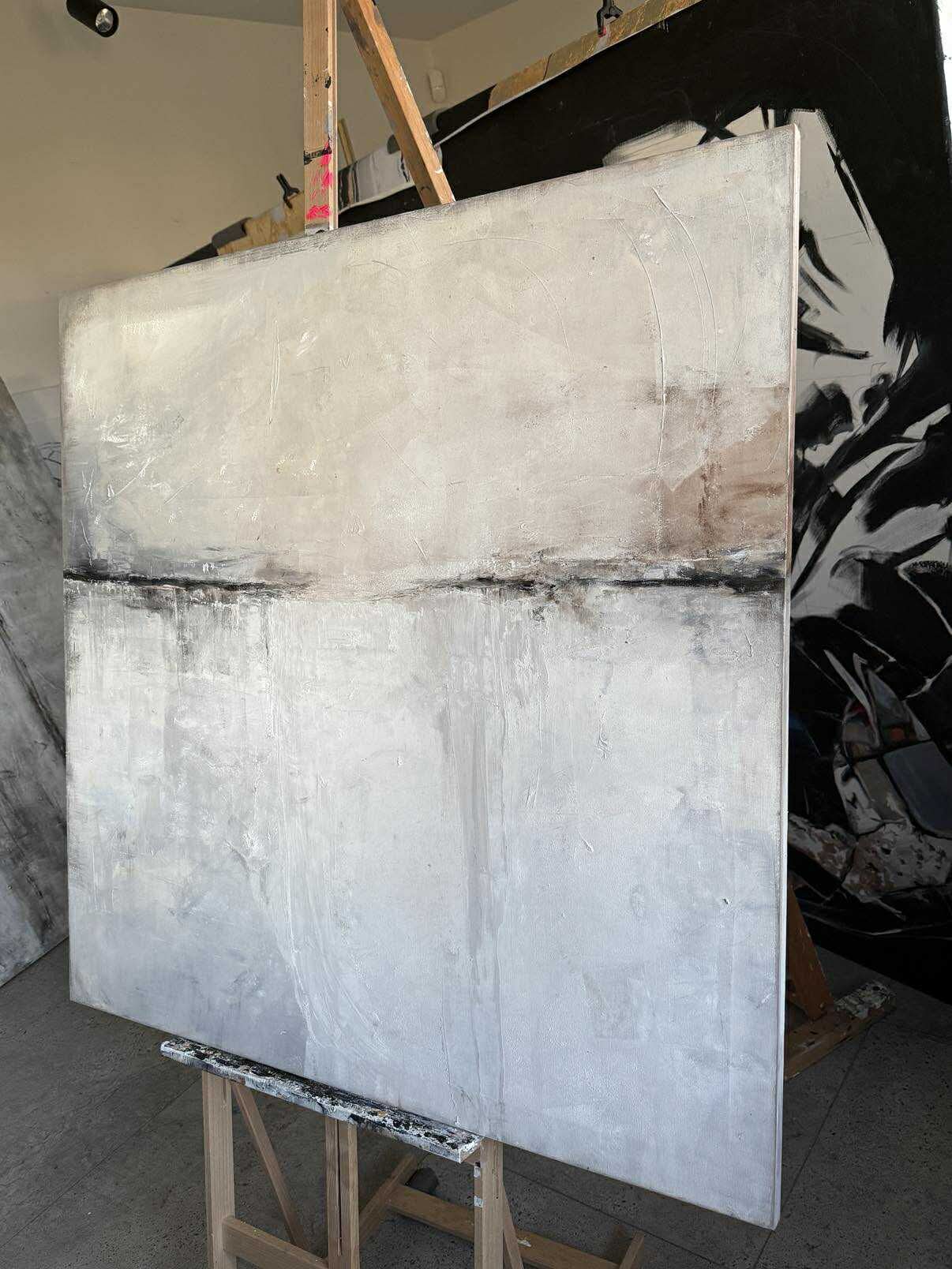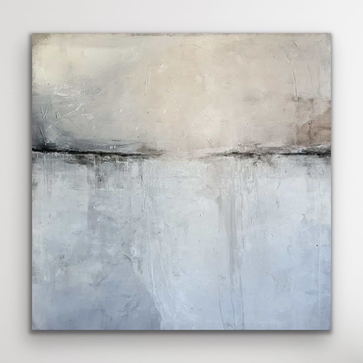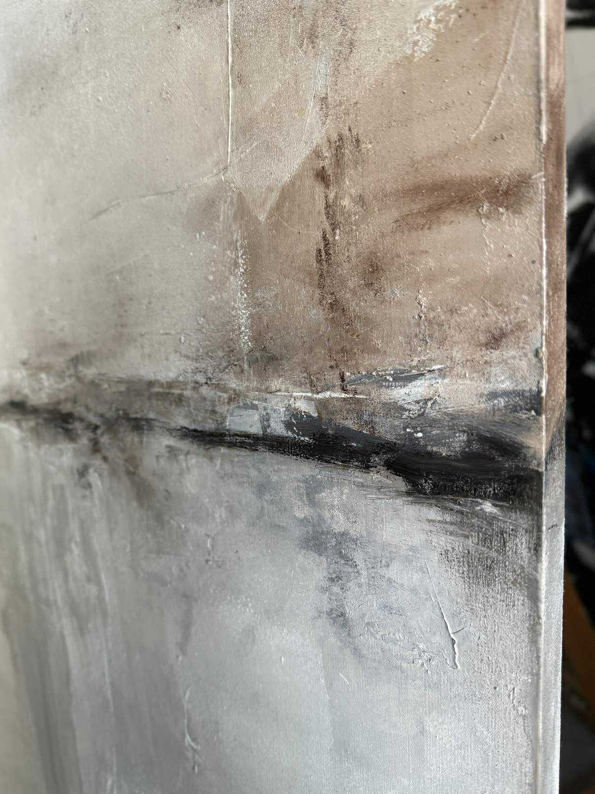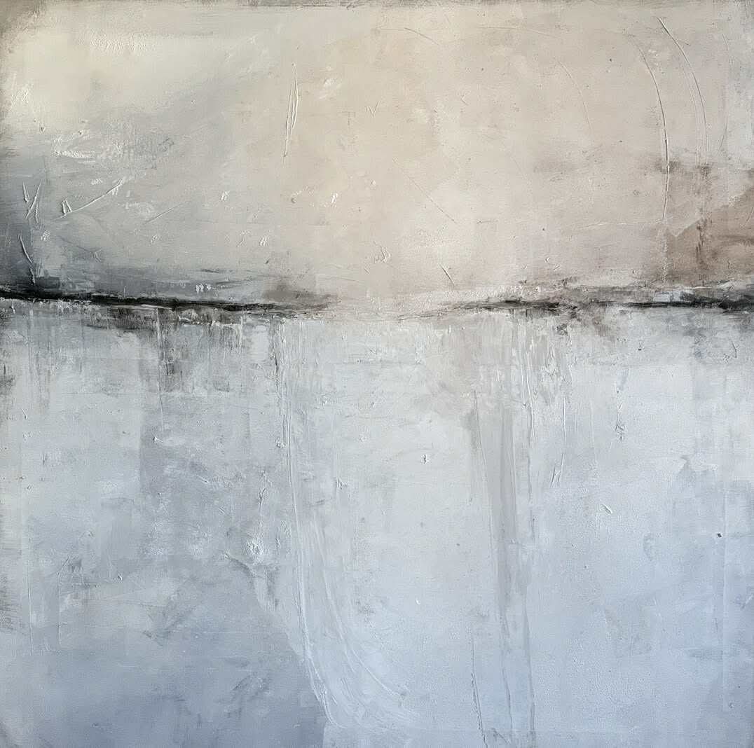 Abstraktes Ölgemälde in einer ruhigen, harmonischen Farbpalette aus Beige, Grau und sanften Naturtönen. Die Komposition ist horizontal gegliedert und erinnert an eine weite, stille Landschaft oder eine sanfte Horizontlinie. Feine Übergänge und strukturierte Farbschichten verleihen dem Werk Tiefe und eine besondere, beruhigende Ausstrahlung.