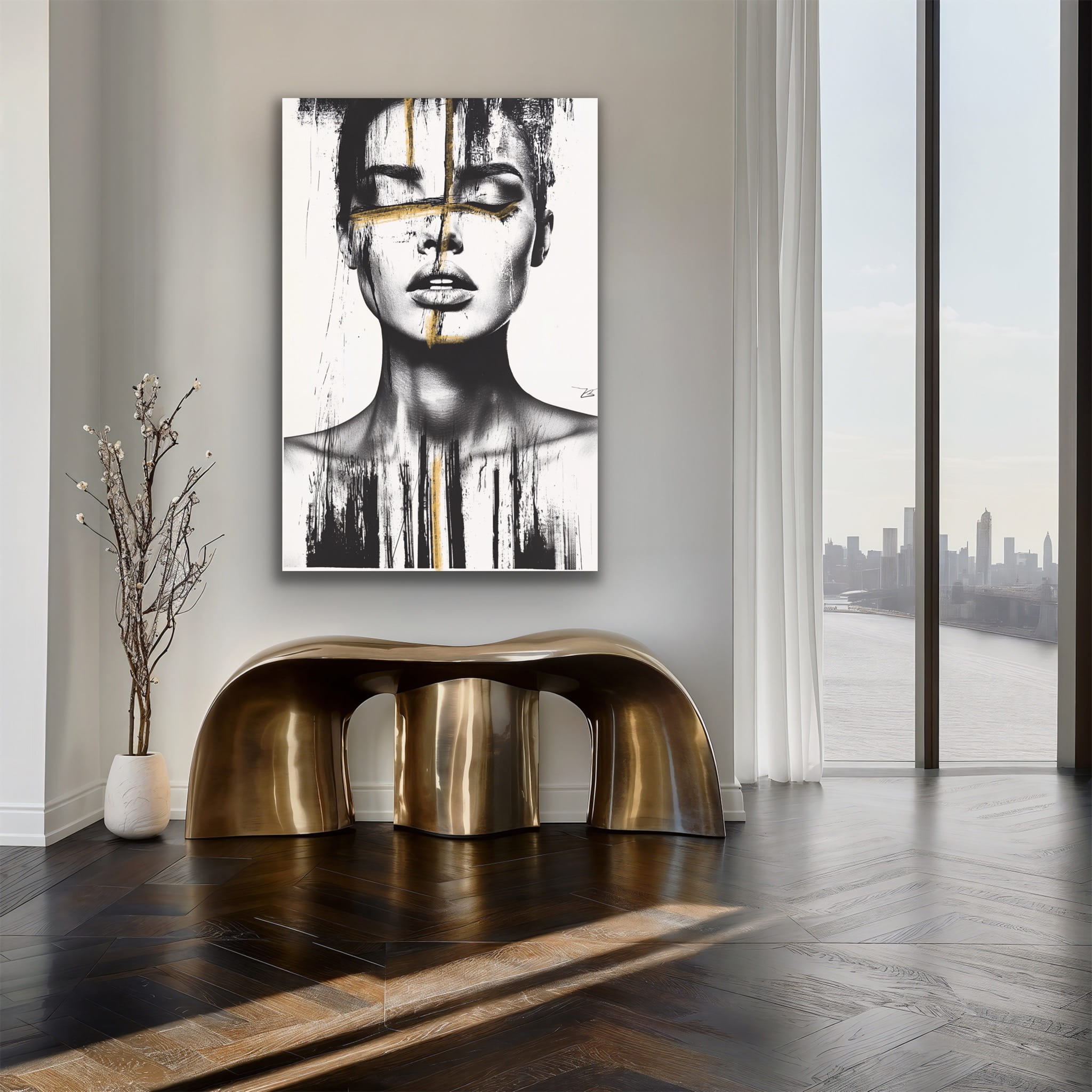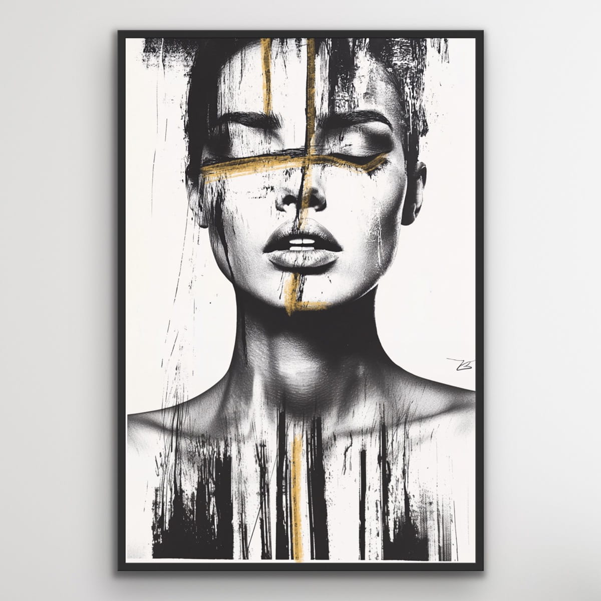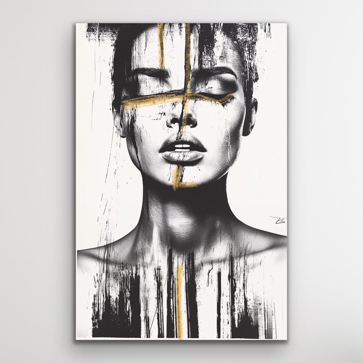THRU vertikale Goldreproduktion eines Gemäldes auf einem Rahmen, gedruckt mit einer klaren Struktur