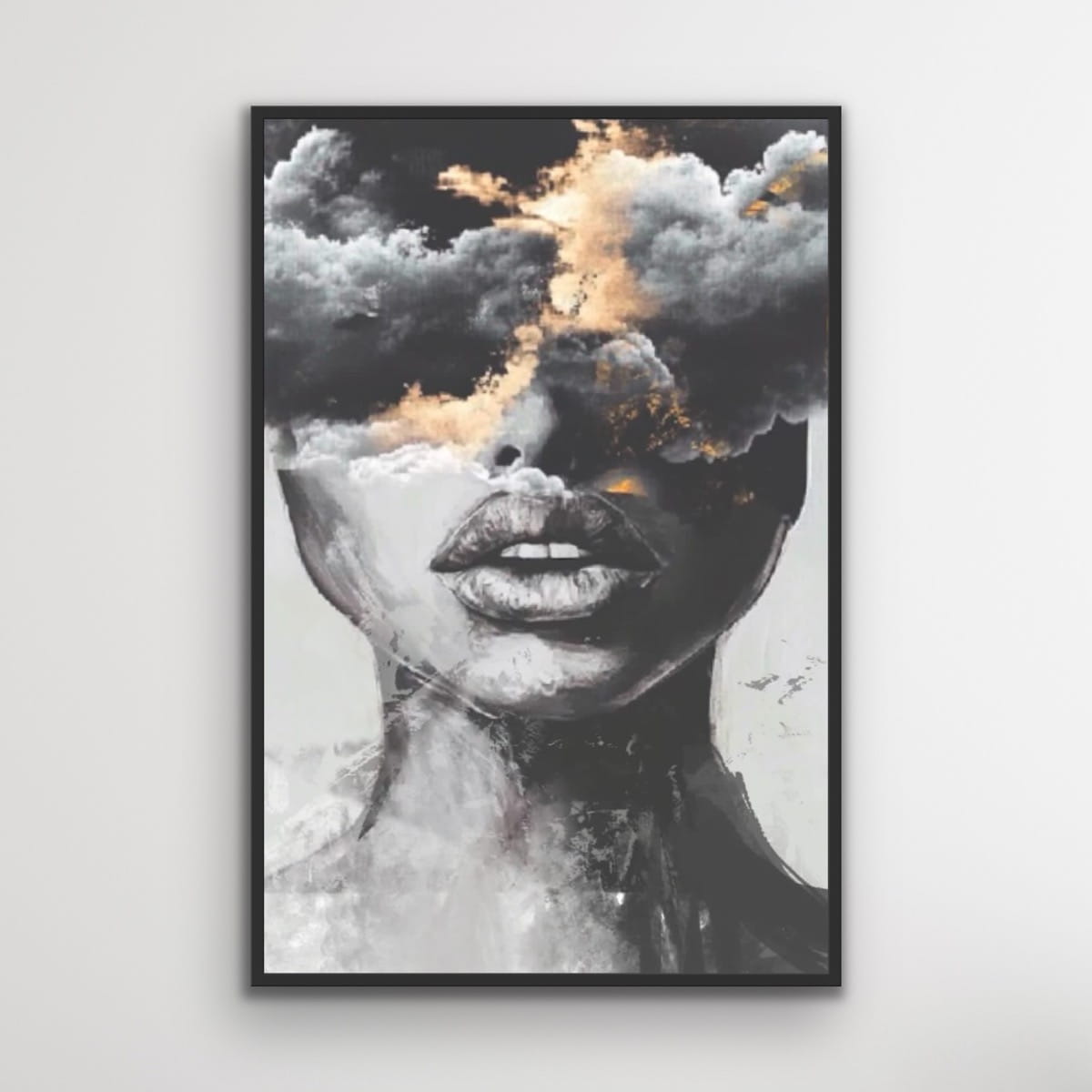 TURBULENT Gold vertikale Reproduktion eines Gemäldes auf einem Rahmen, gedruckt mit einer klaren Struktur