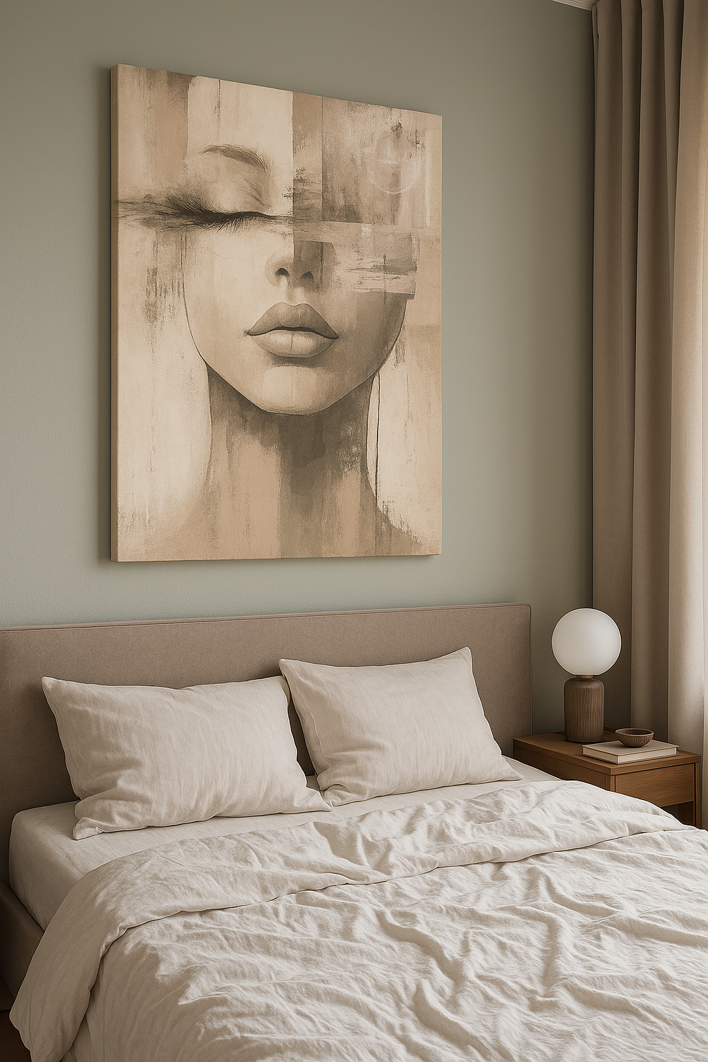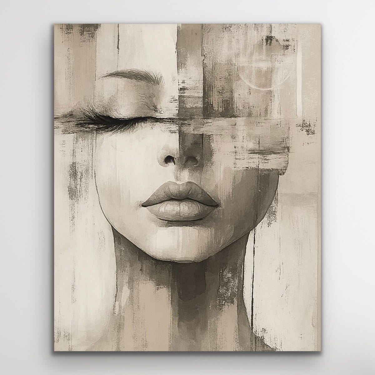 BLIND AND NOBODY'S vertical reproduction of a painting on a frame, printed with a clear structure