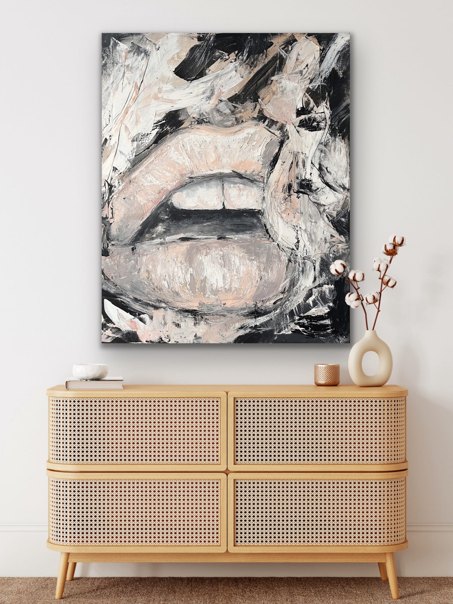 MOUTHPIECE vertical reproduction - image on a frame, printed with a clear structure