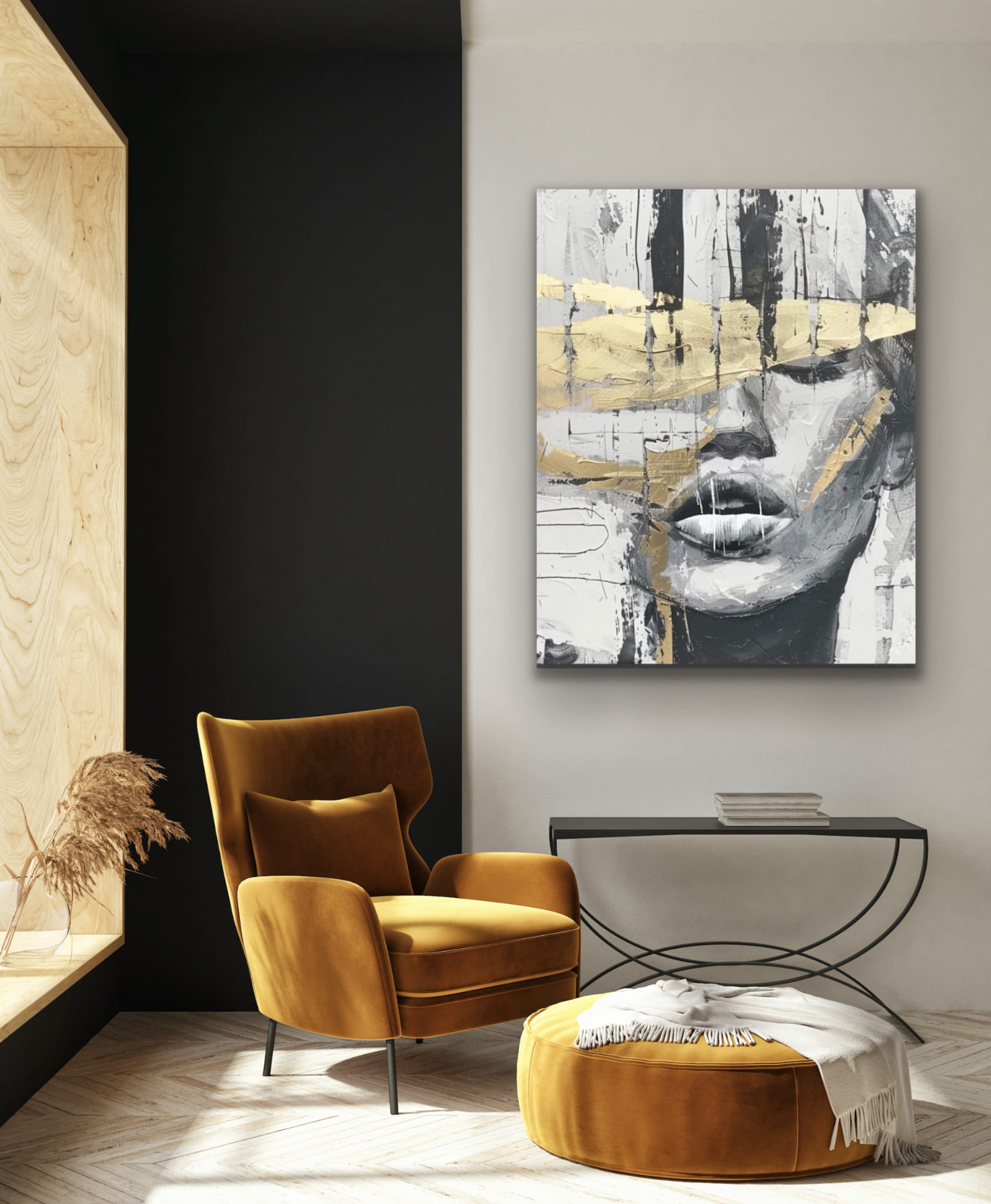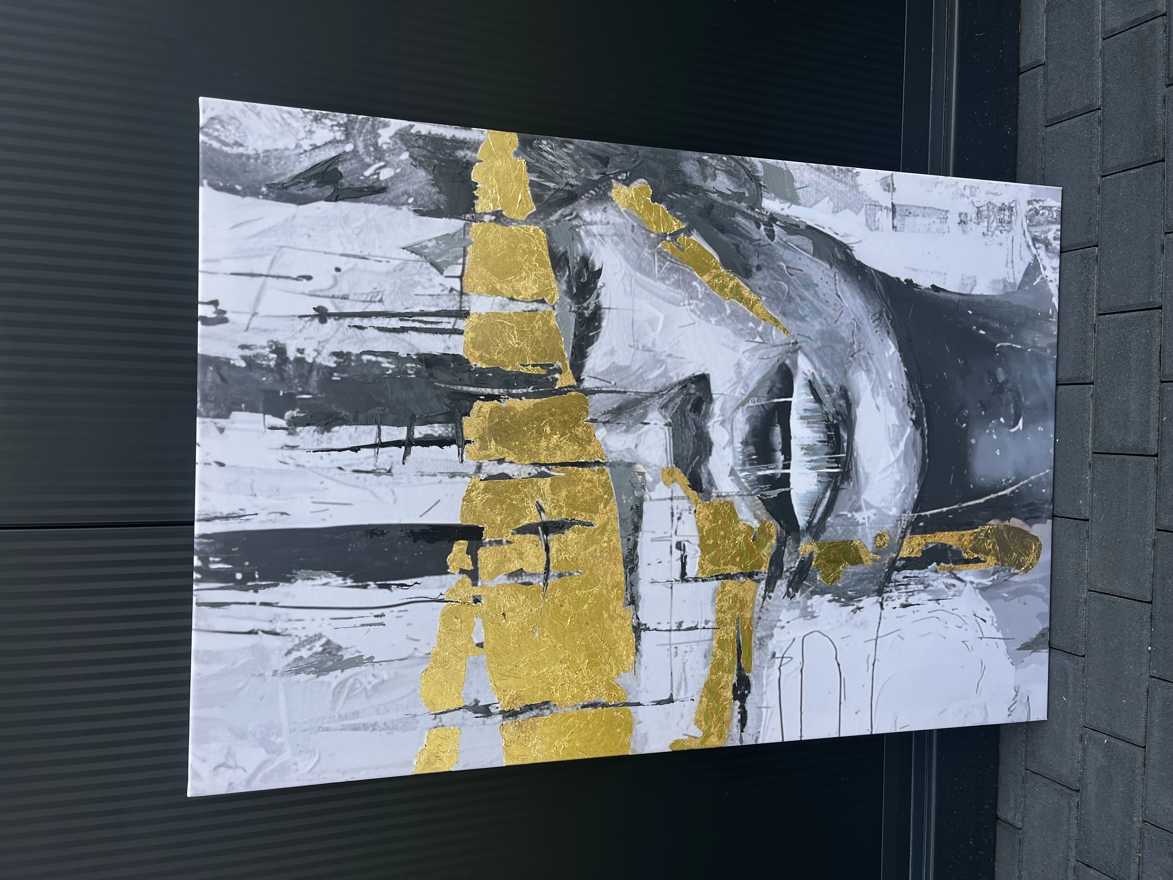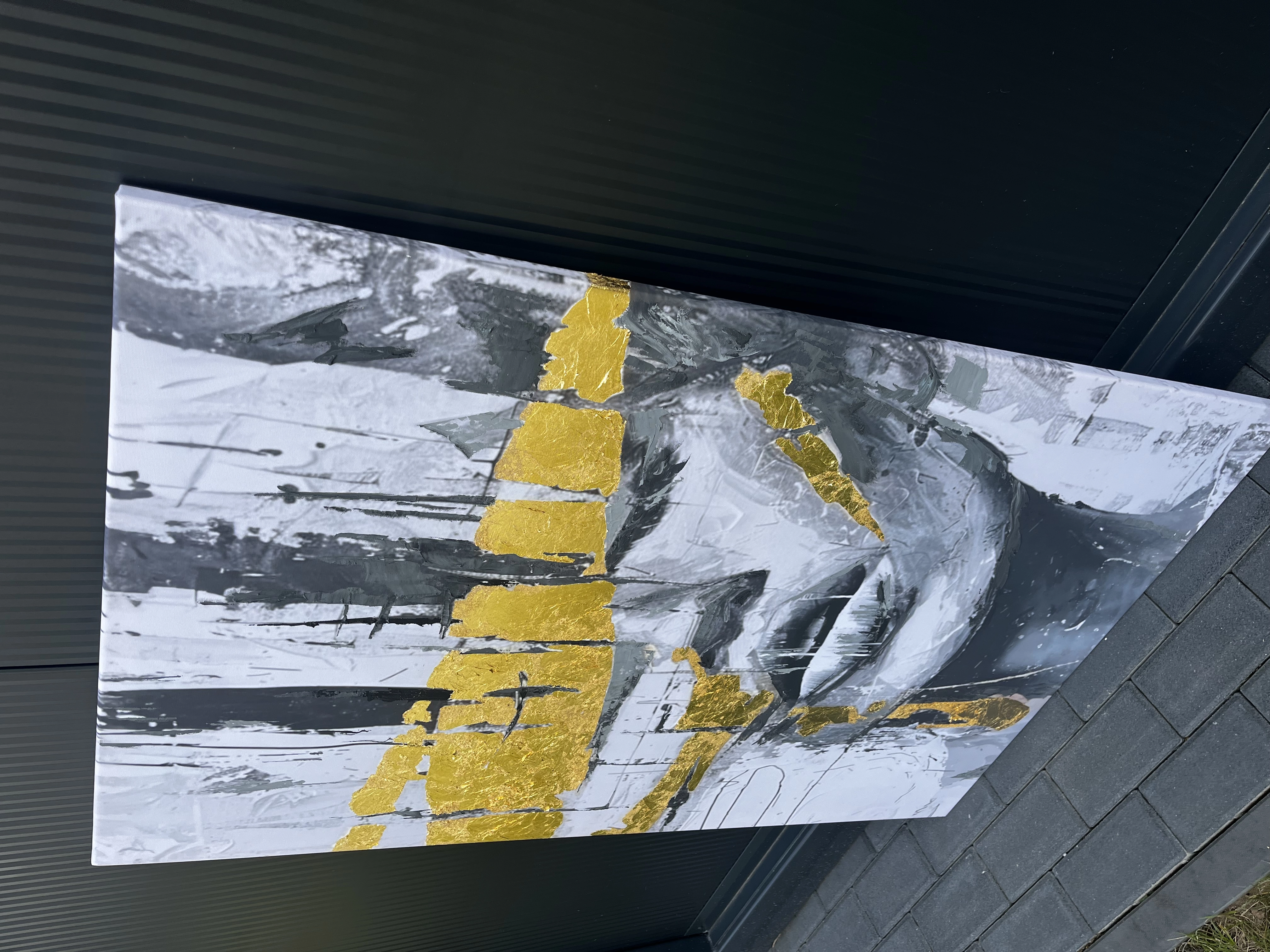 RAISED vertical gold painting reproduction on a frame, printed with a clear structure pion złoto reprodukcja obraz na stelażu, drukowany z wyraźną strukturą