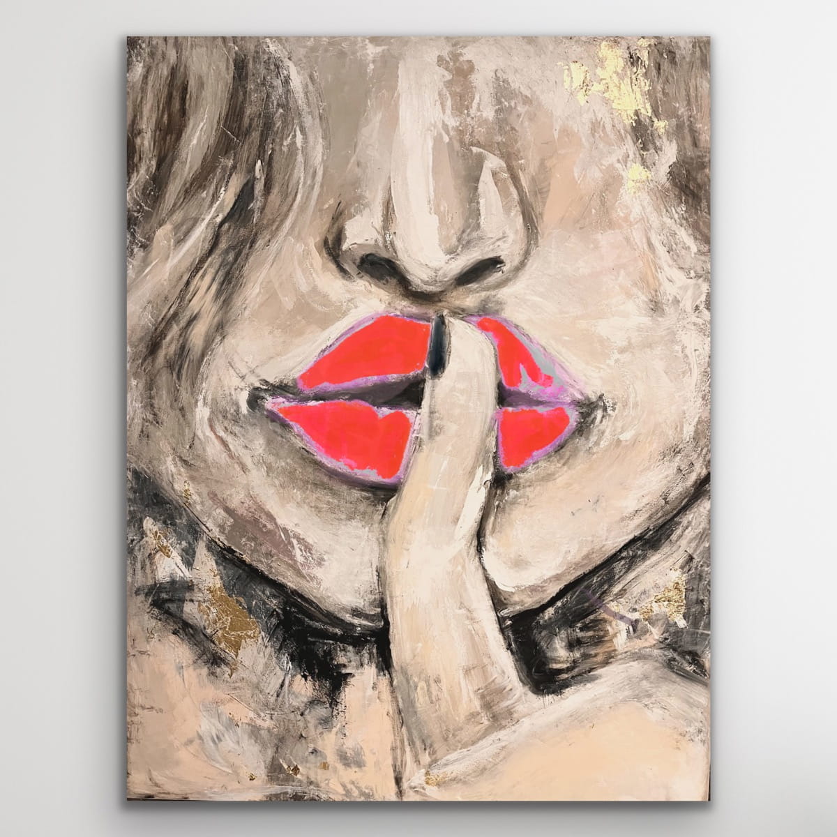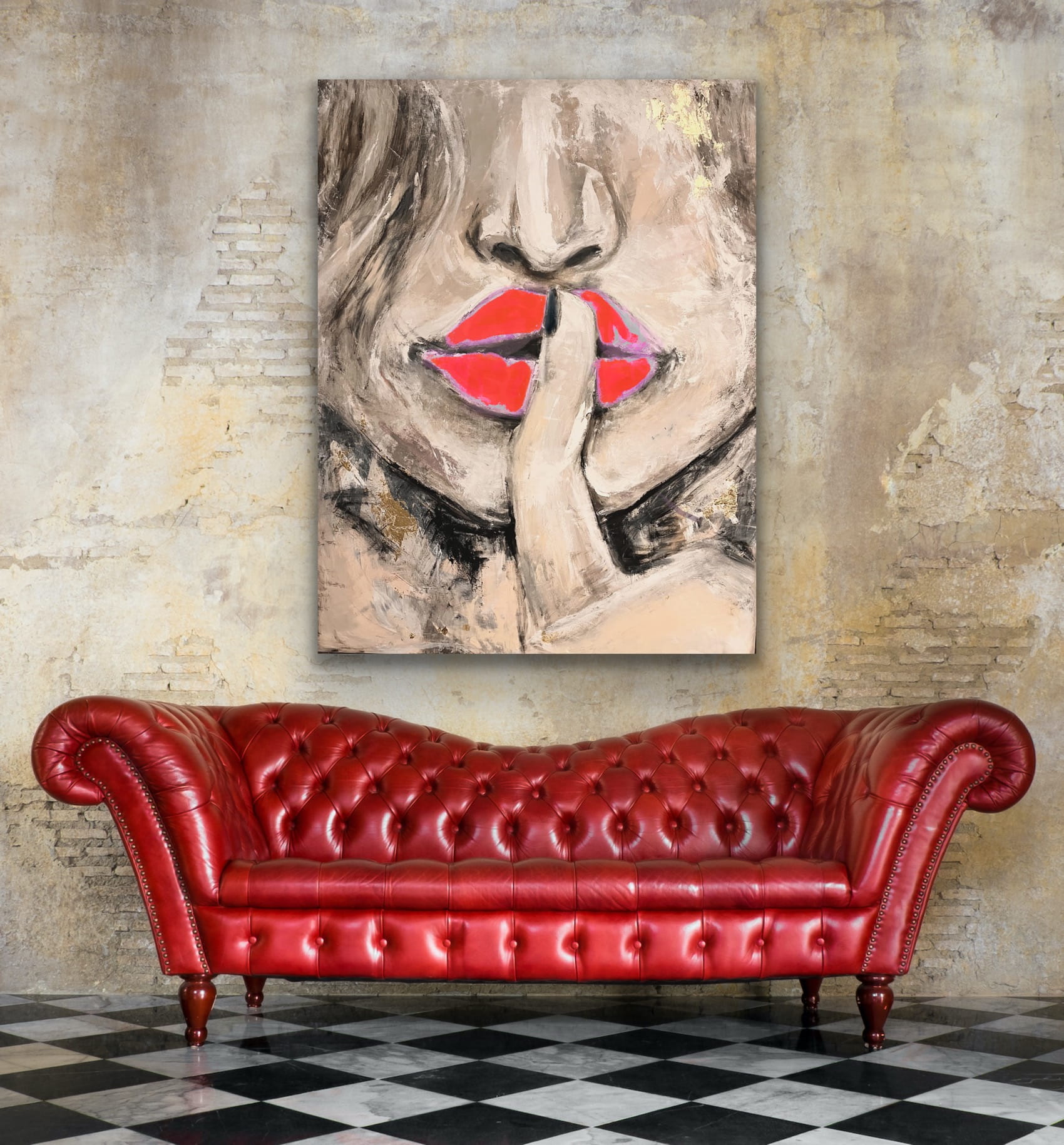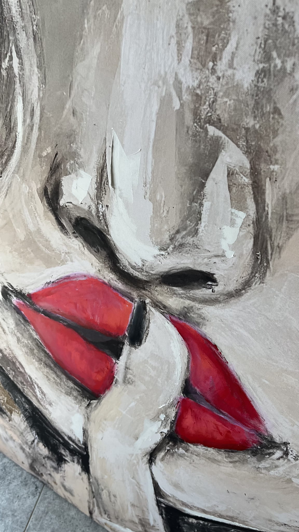 RED KISS vertical reproduction - image on a frame, printed with a clear structure