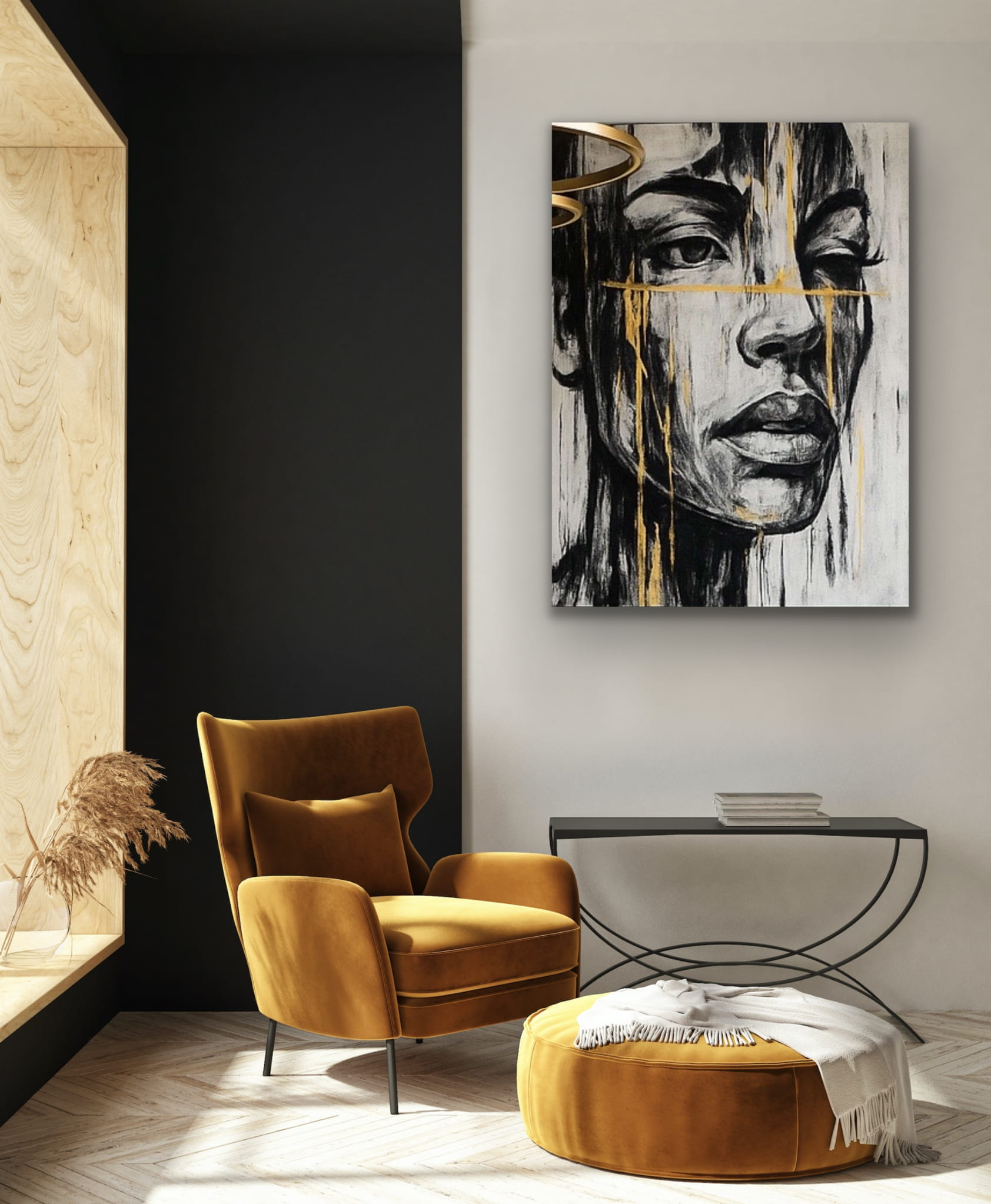 A reproduction is a printed version of a painting. The print is made on a fabric imitating canvas. The weight of the fabric is 260g. The fabric is stretched over a wooden frame. The side of the painting is printed and is 2 cm long.