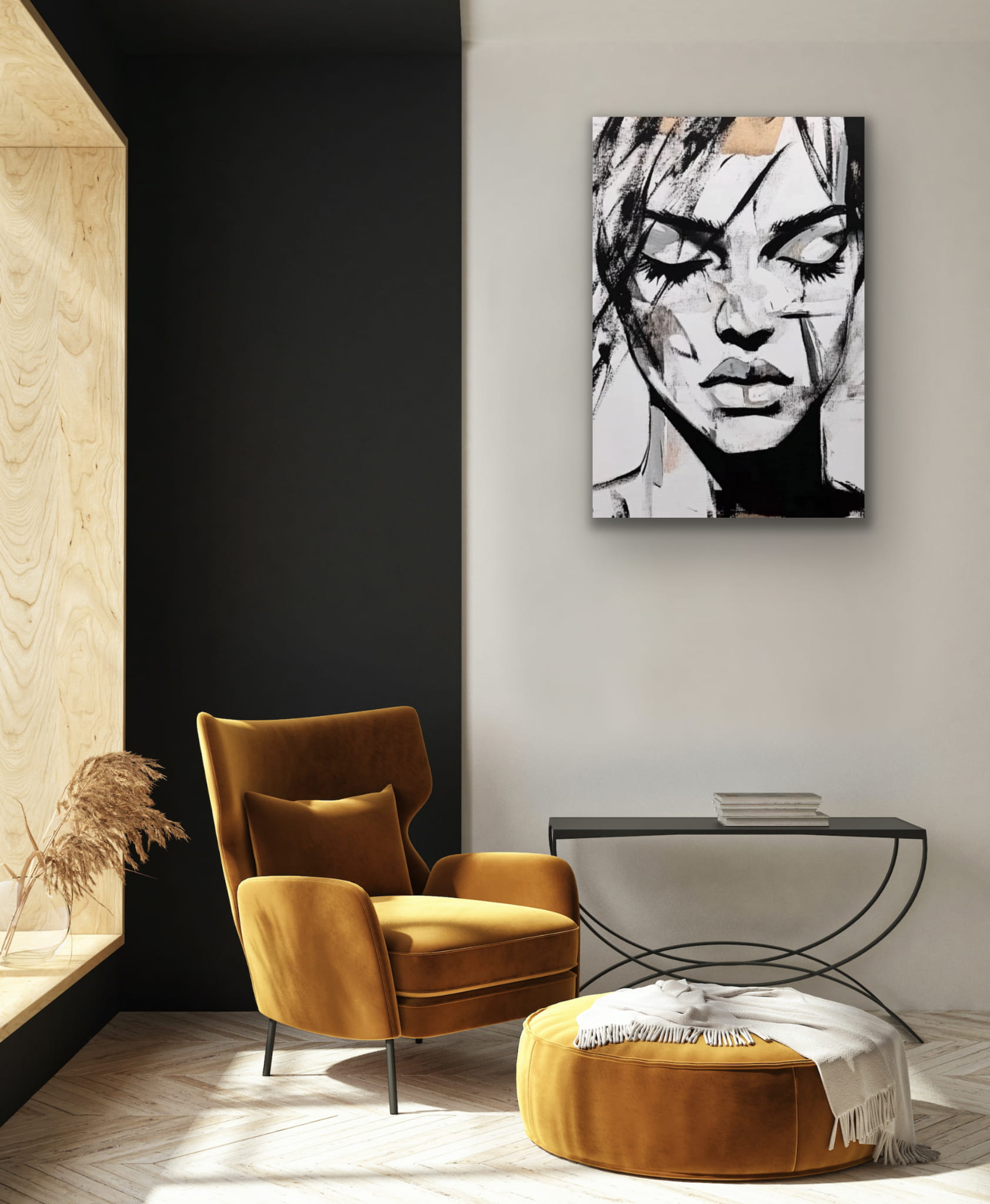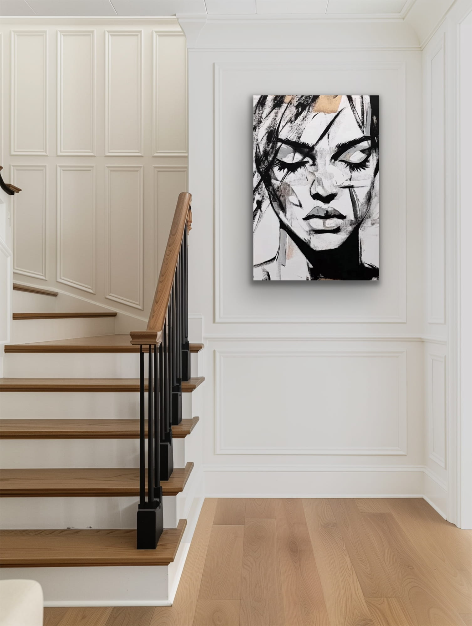 A reproduction is a printed version of a painting. The print is made on a fabric imitating canvas. The weight of the fabric is 260g. The fabric is stretched over a wooden frame. The side of the painting is printed and is 2 cm long.