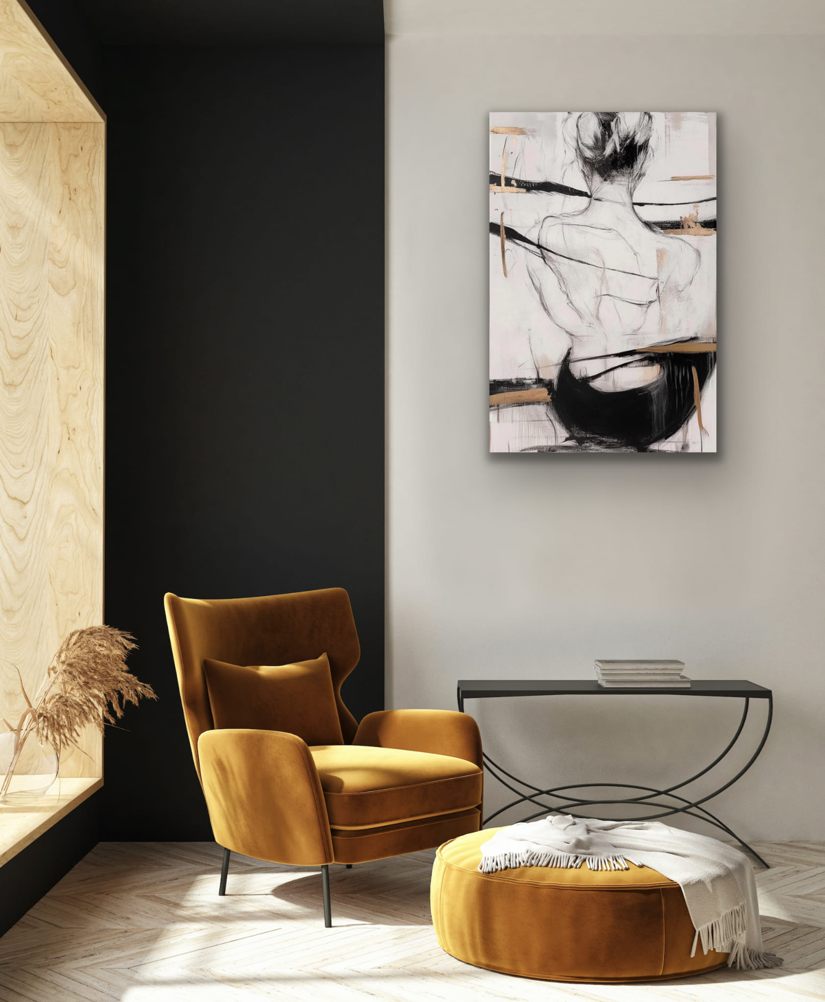 A reproduction is a printed version of a painting. The print is made on a fabric imitating canvas. The weight of the fabric is 260g. The fabric is stretched over a wooden frame. The side of the painting is printed and is 2 cm long.