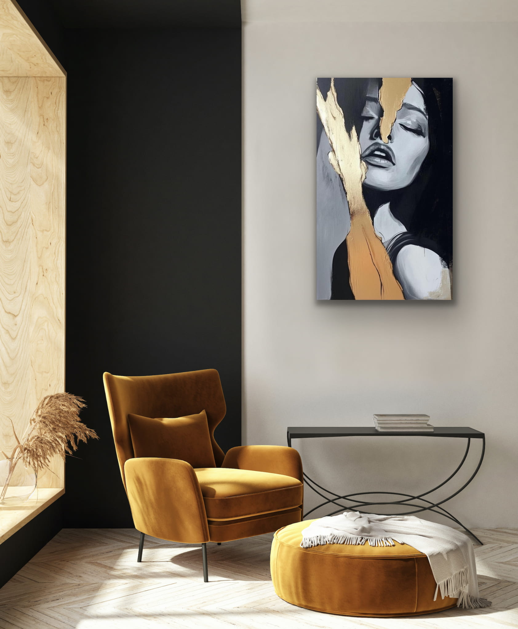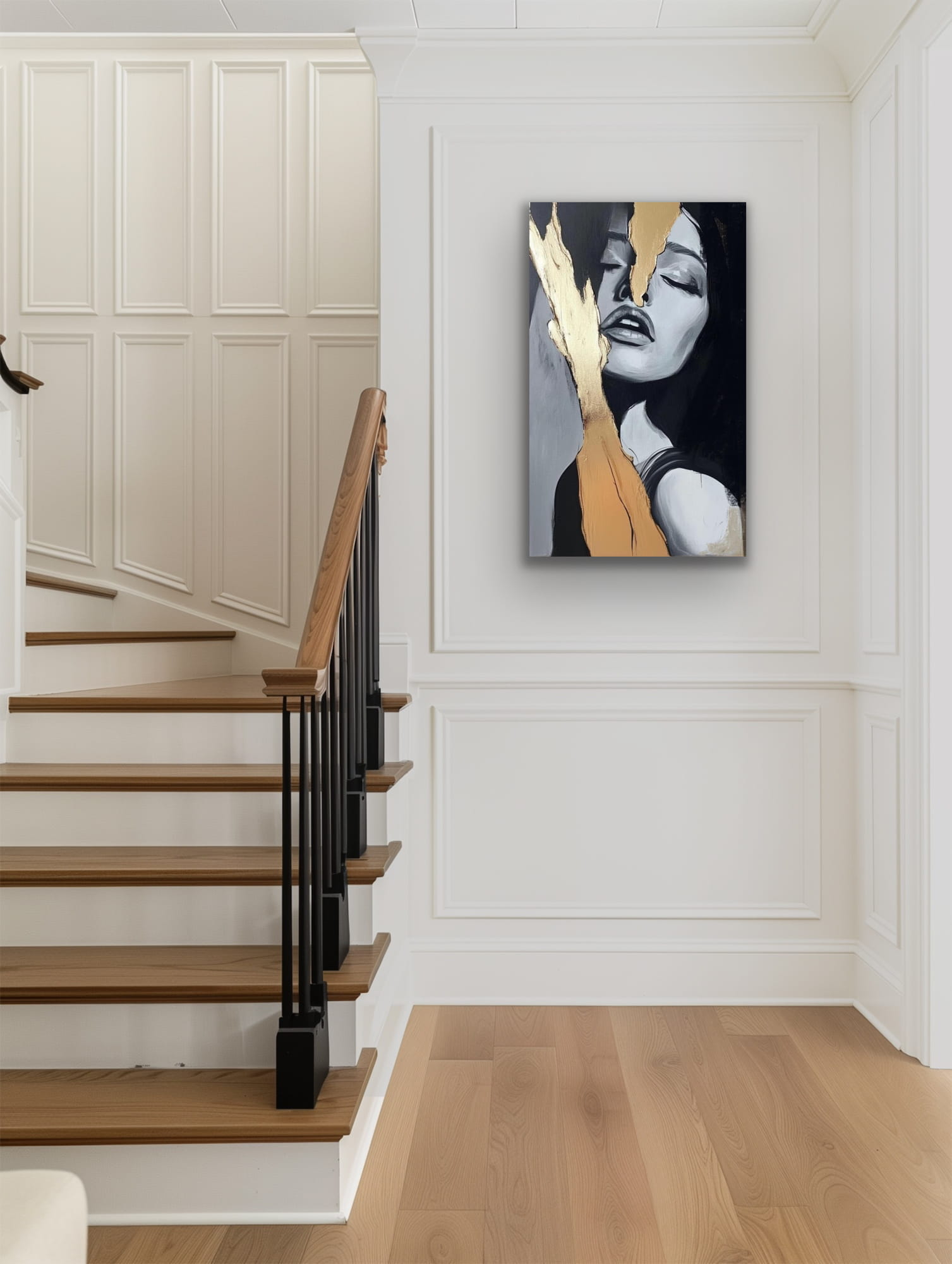 REINFORCED gold vertical reproduction painting on a frame, printed with a clear structure (1) (1) (1) (1) (1)