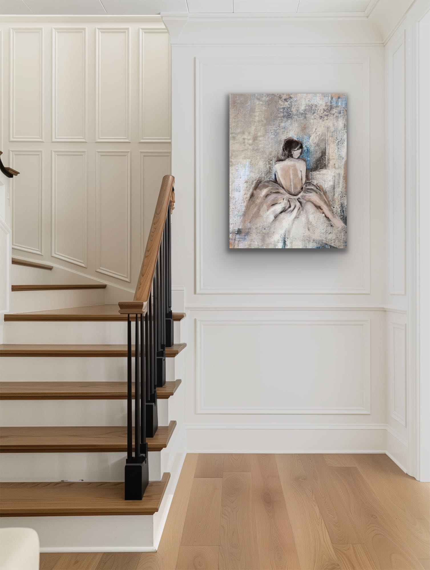 A reproduction is a printed version of a painting. The print is made on a fabric imitating canvas. The weight of the fabric is 260g. The fabric is stretched over a wooden frame. The side of the painting is printed and is 2 cm long.