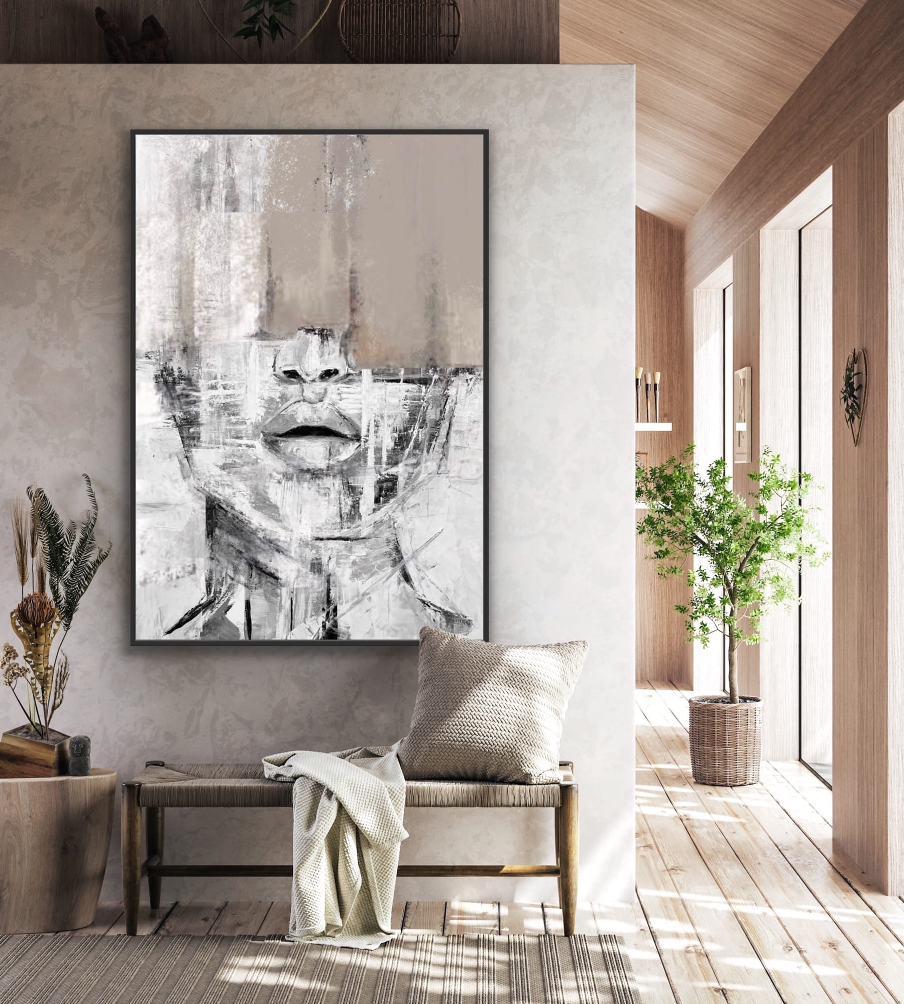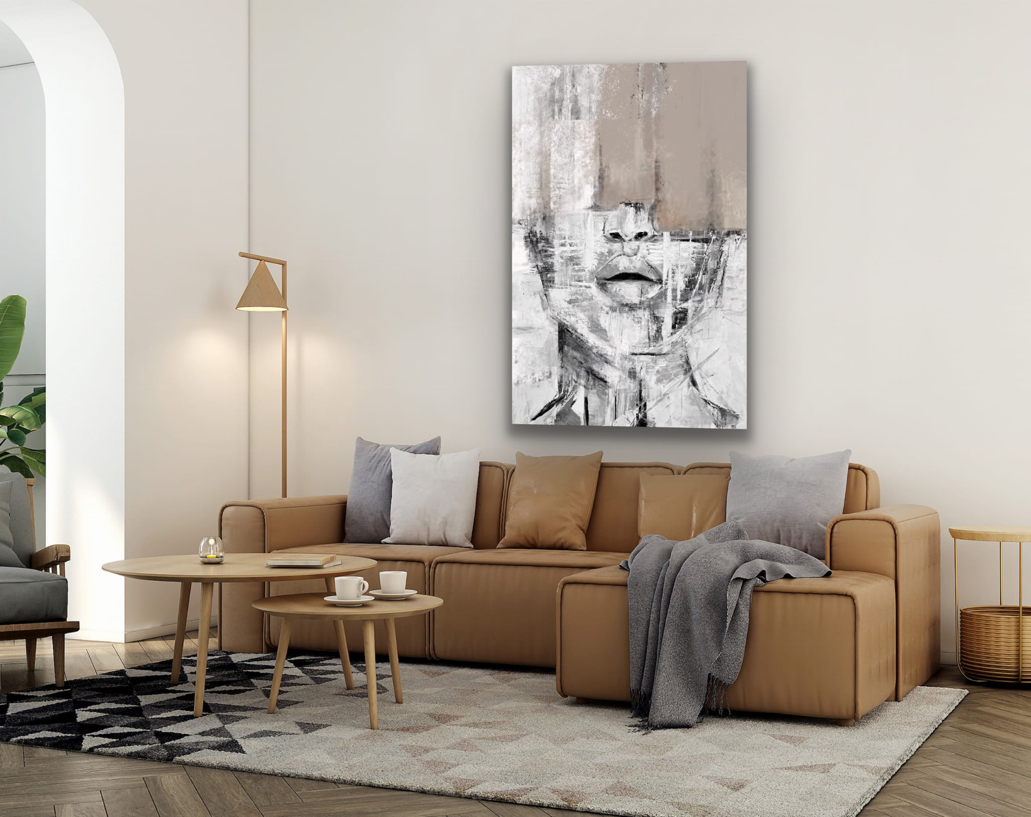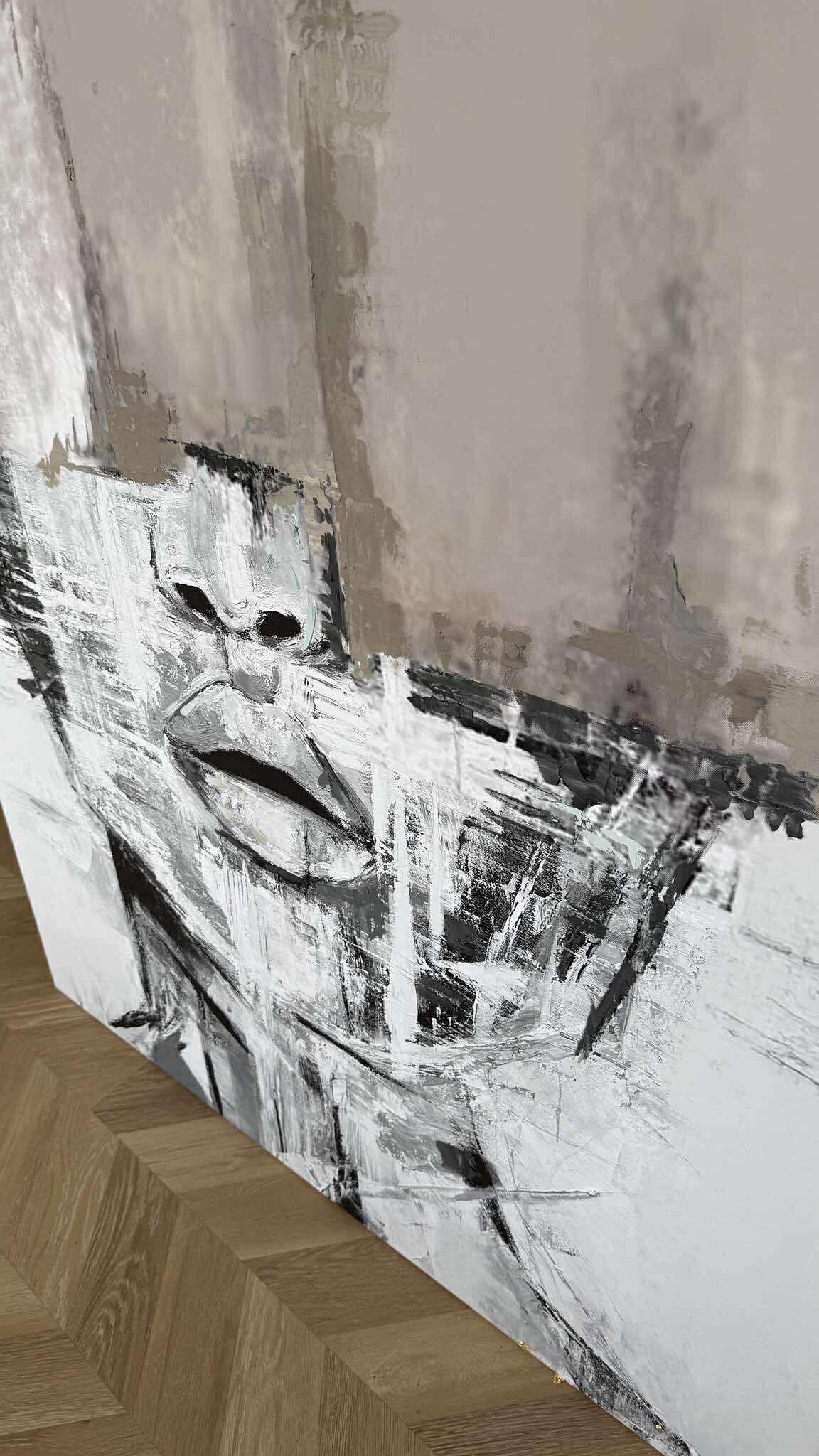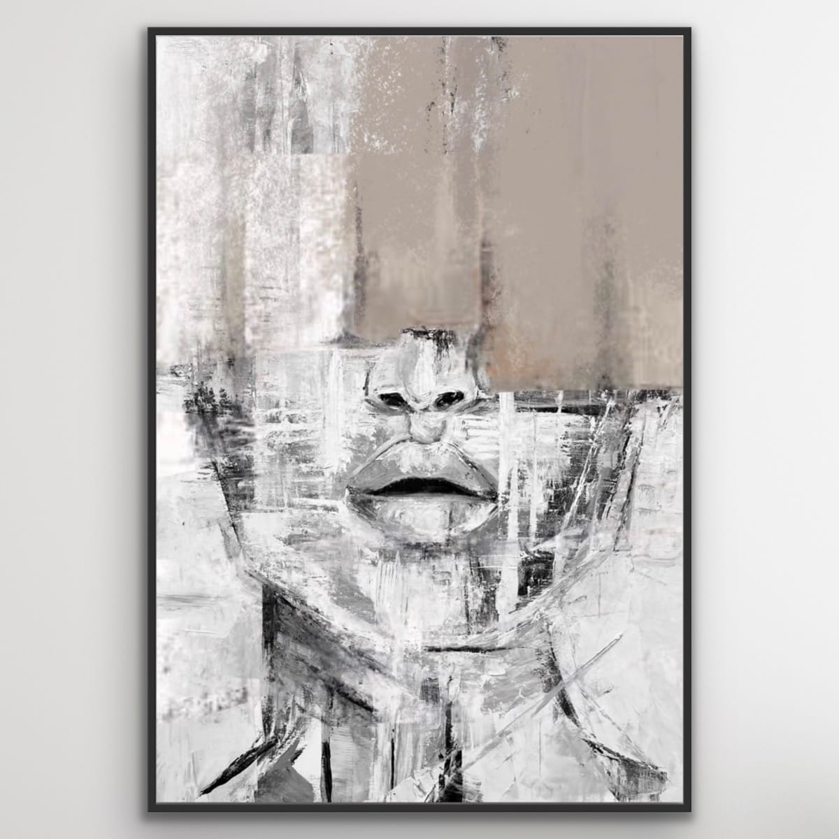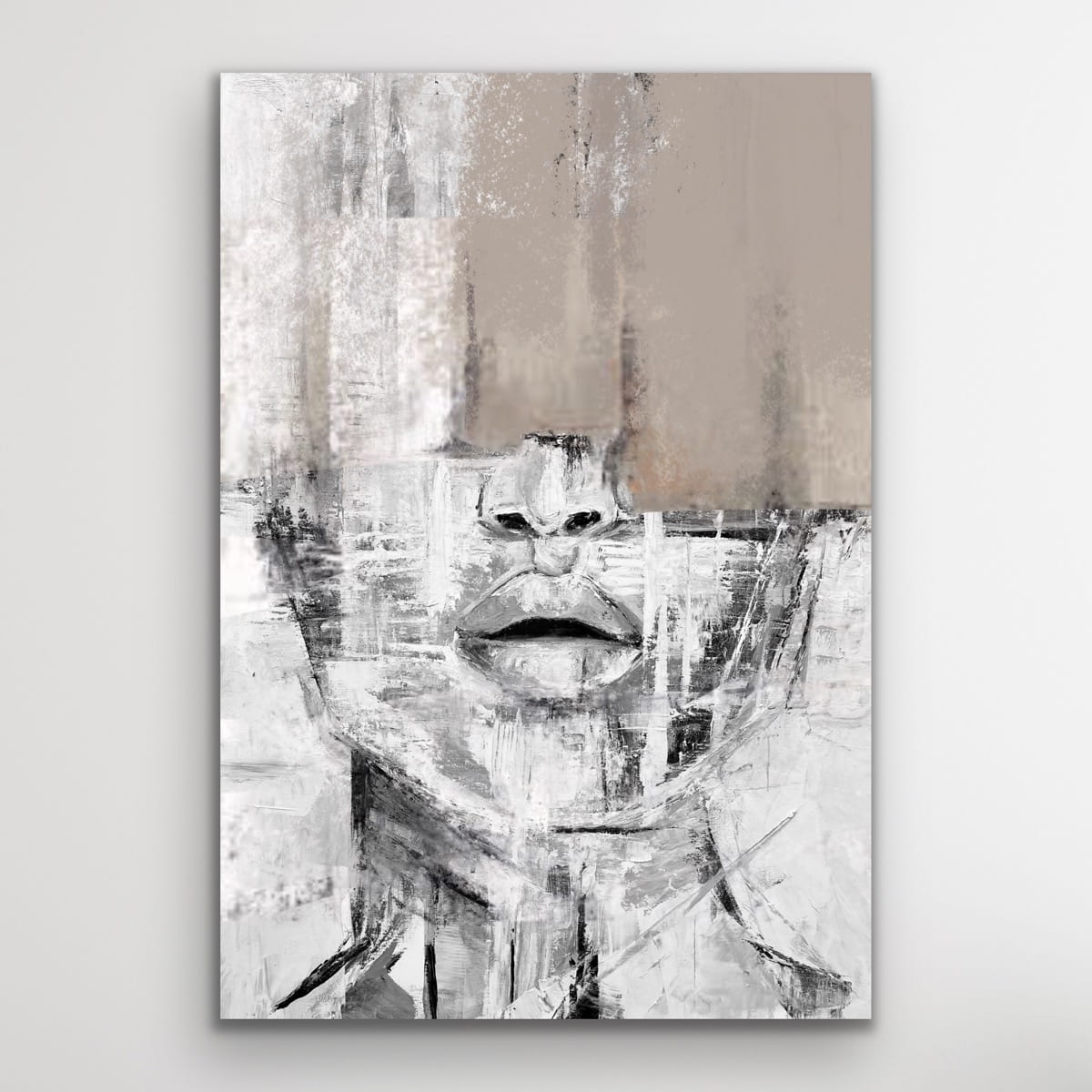 SARCASTIC beige vertical reproduction of a painting on a frame, printed with a clear structure
