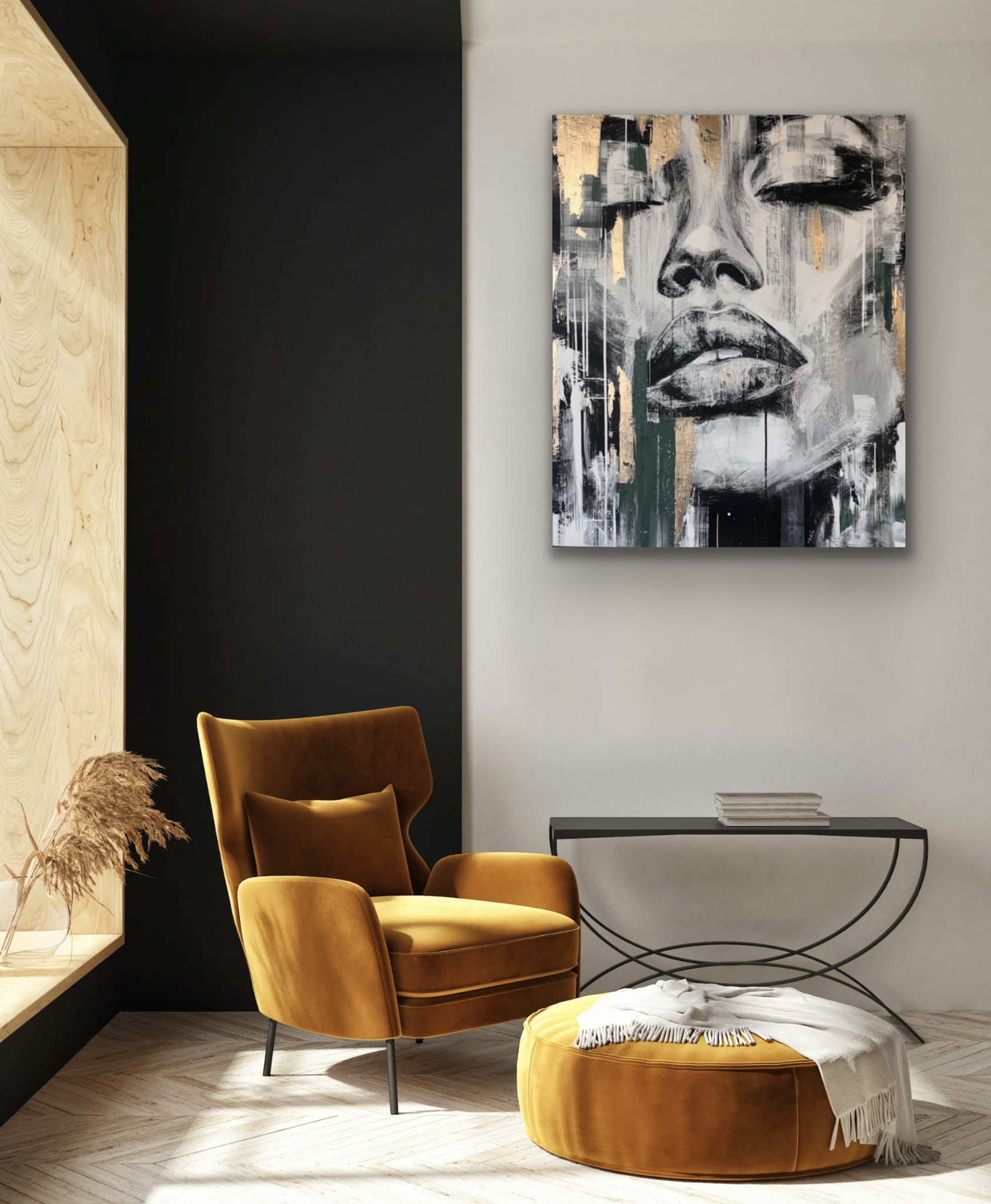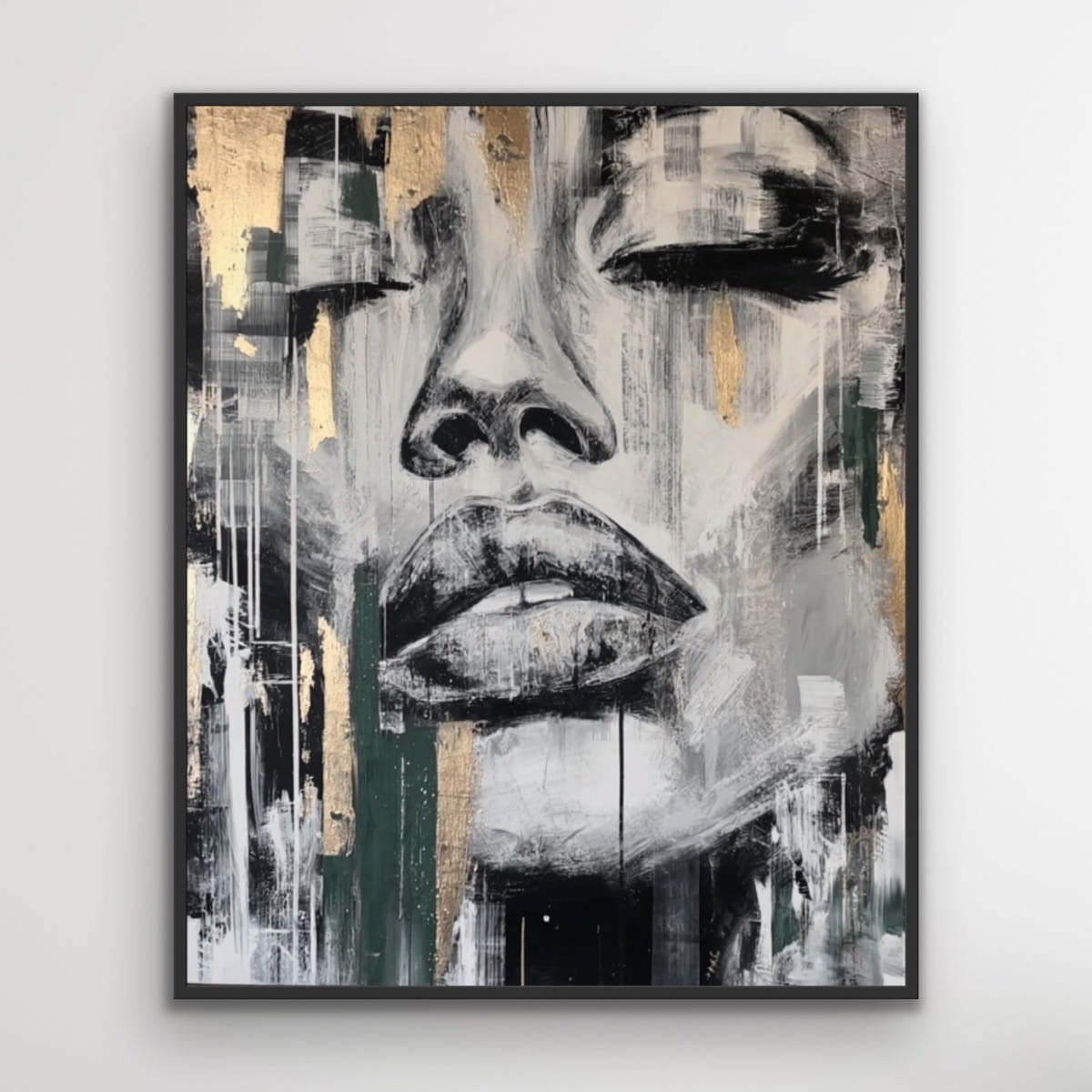 Sinister level reproduction of a painting on a frame, printed with a clear structure (1)