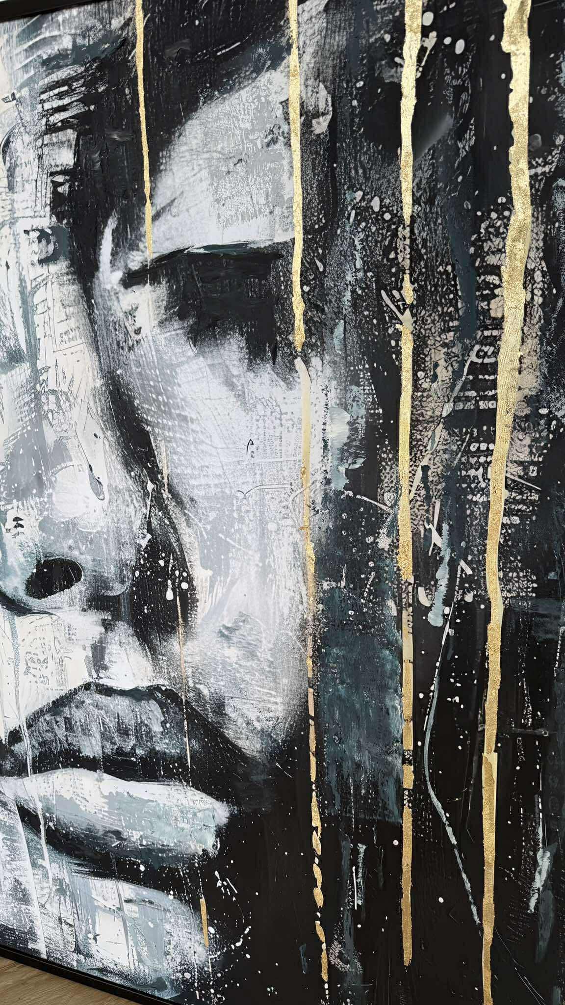 Sinister level reproduction of a painting on a frame, printed with a clear structure