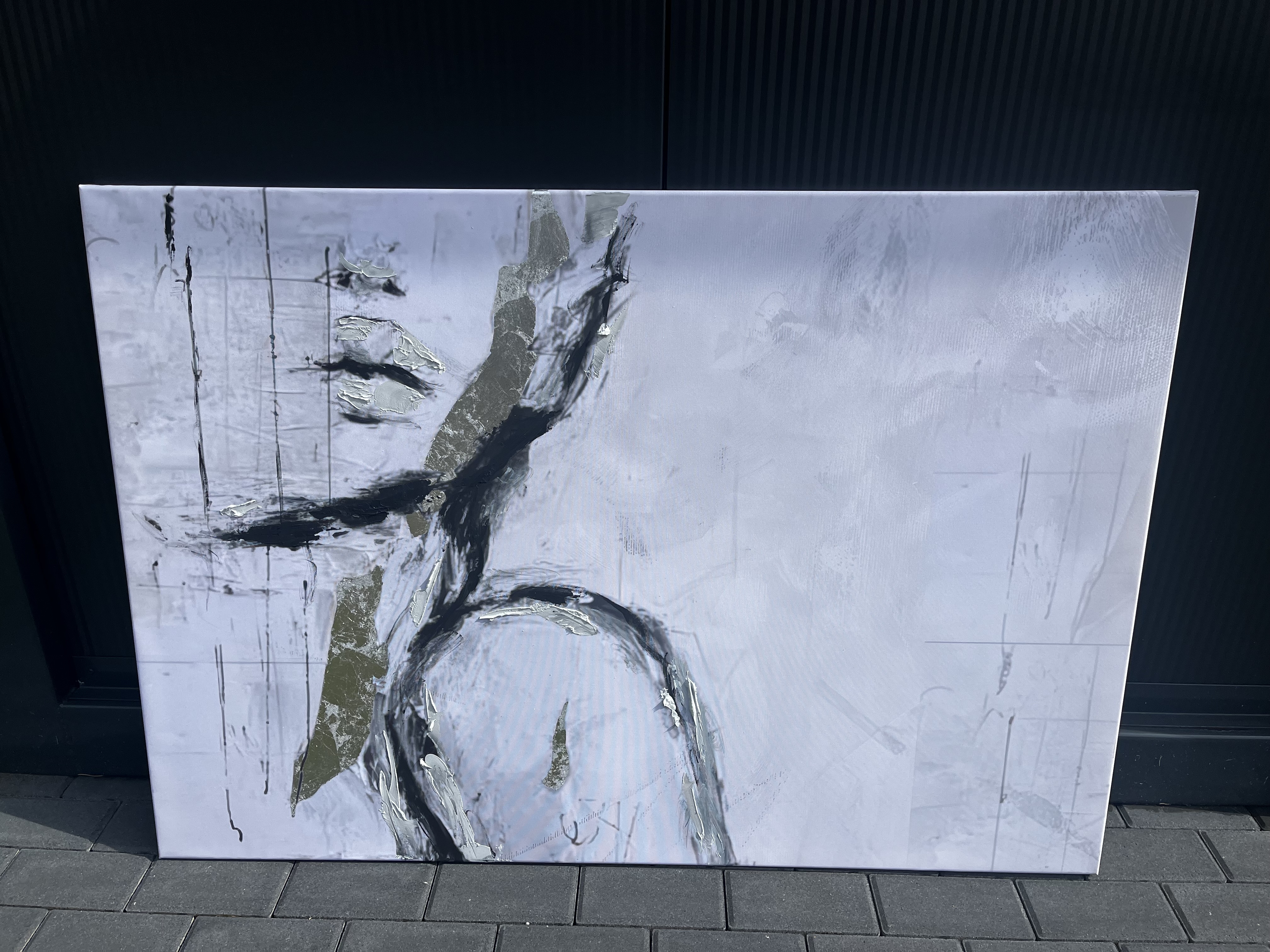 KAJONOWA srebrna poziom reprodukcja obraz na stelażu, drukowany z wyraźną strukturą