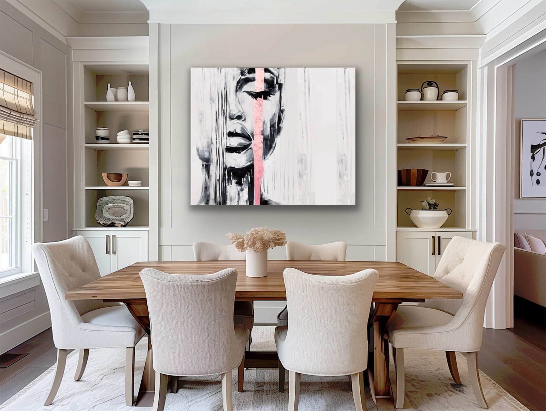Reprodukcja to drukowana wersja obrazu. Druk wykonany jest na tkaninie imitującej płótno. Gramatura tkaniny to 260g. Tkanina jest naciągnięta na drewniany stelaż. Bok obrazu jest zadrukowany i ma 2 cm.