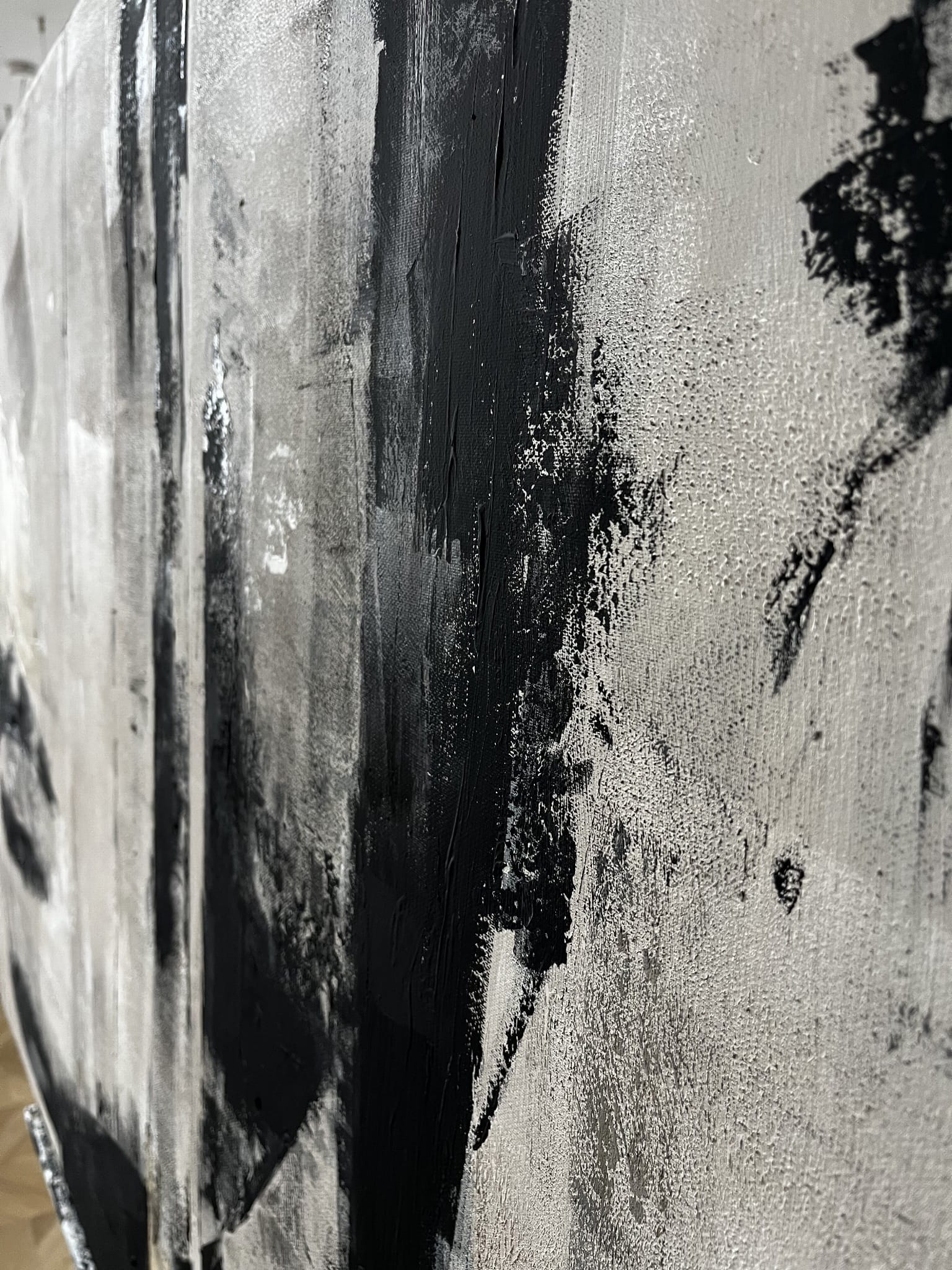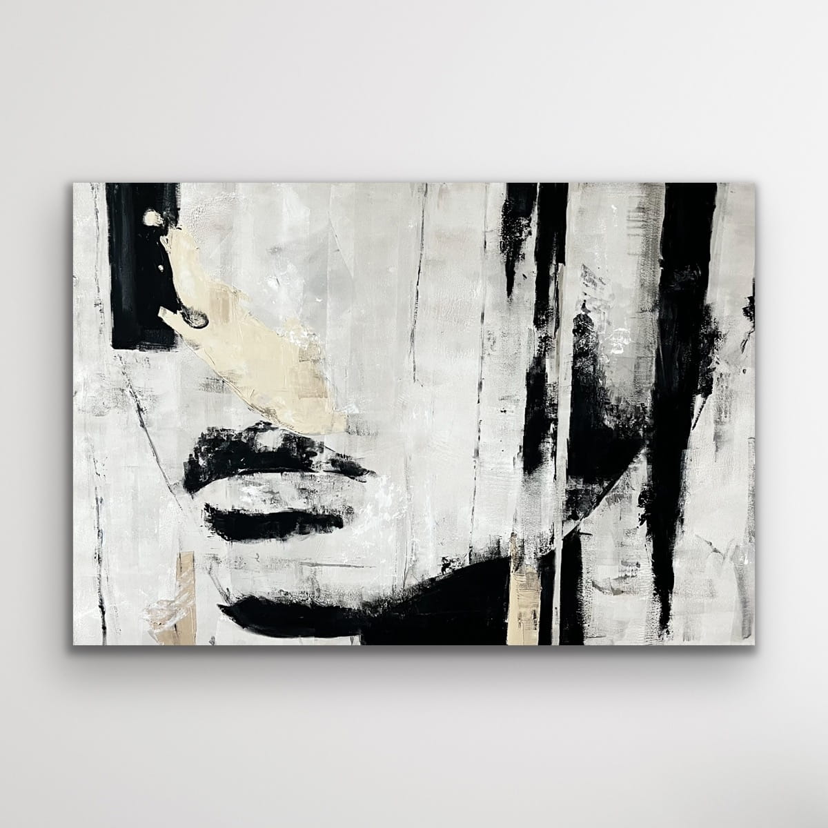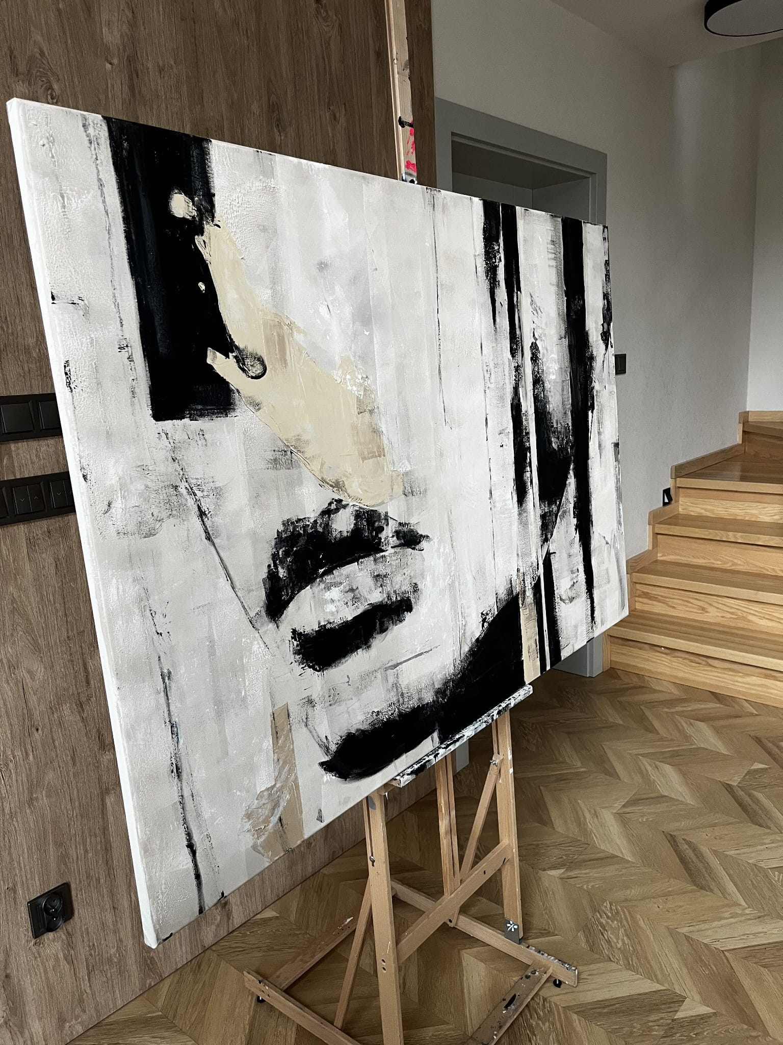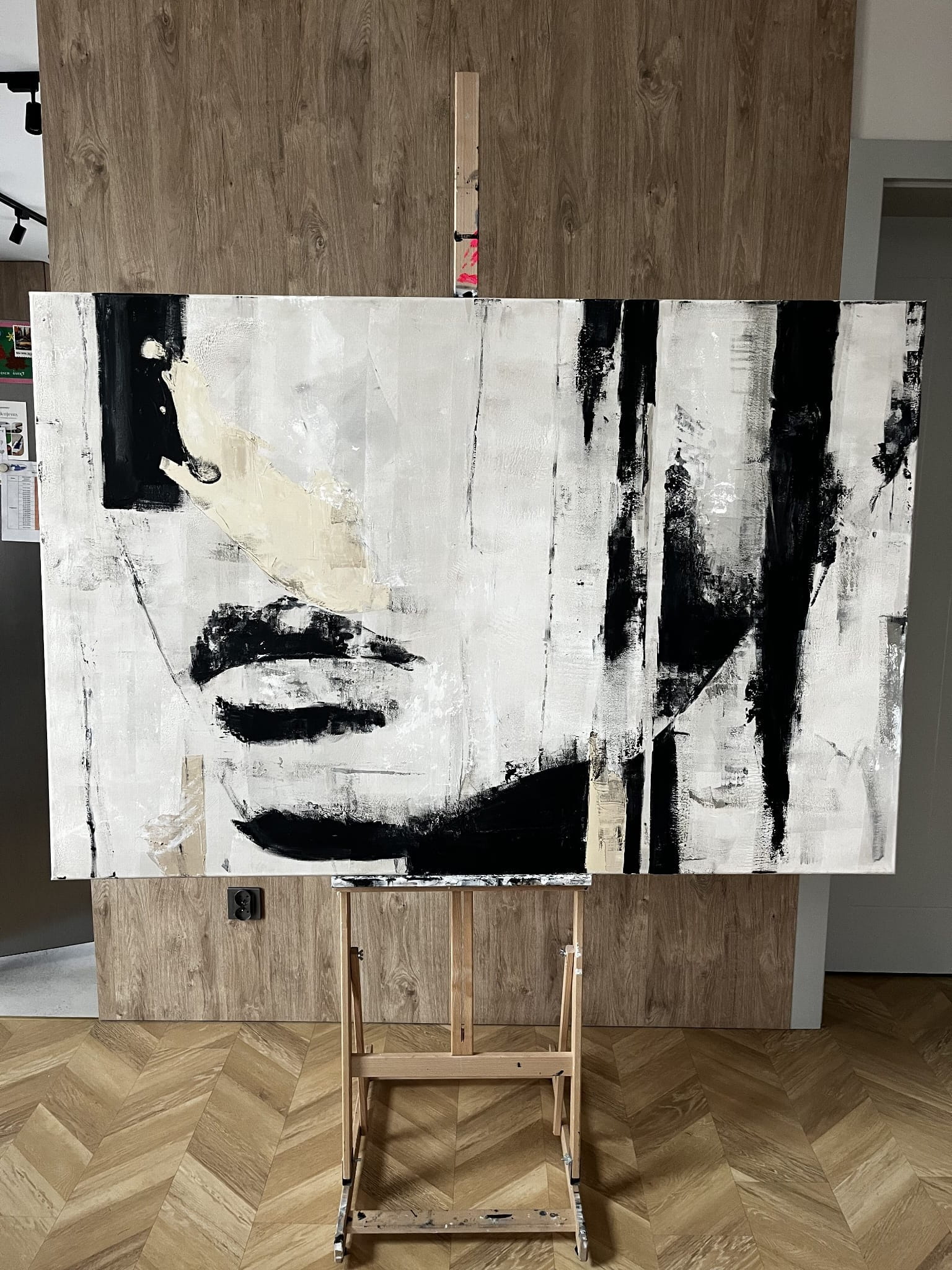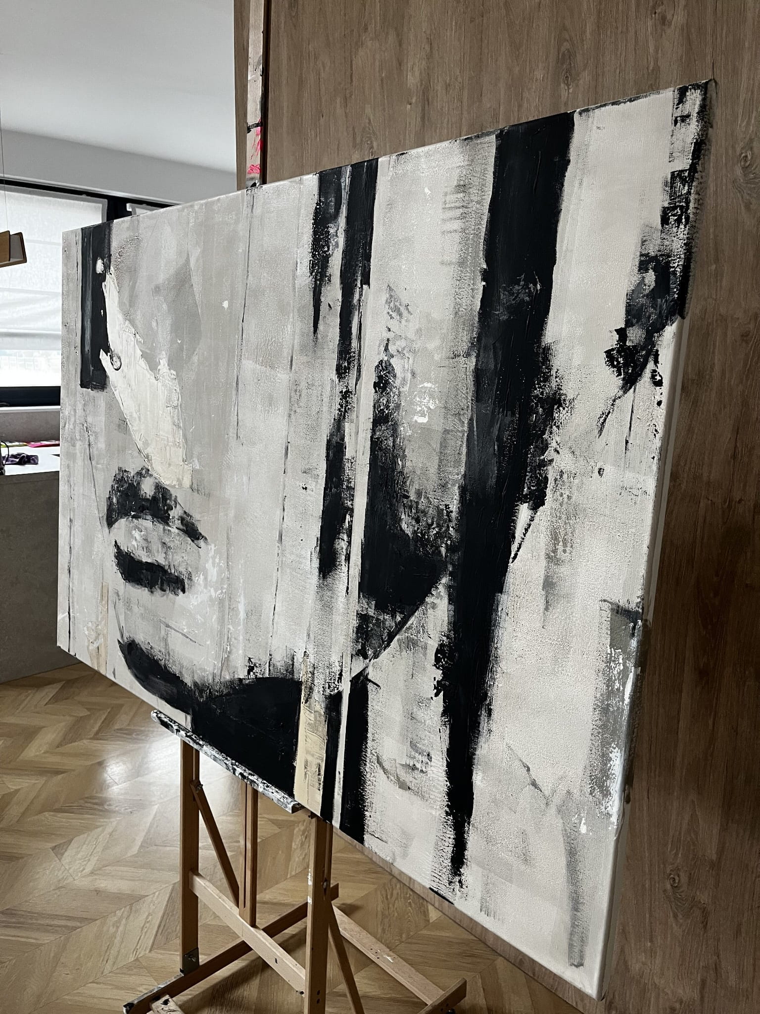 Wyrazisty, fragmentaryczny portret o silnym kontraście i głębokiej emocji. Obraz przyciąga uwagę swoją intensywnością i doskonale sprawdzi się jako centralny punkt aranżacji.